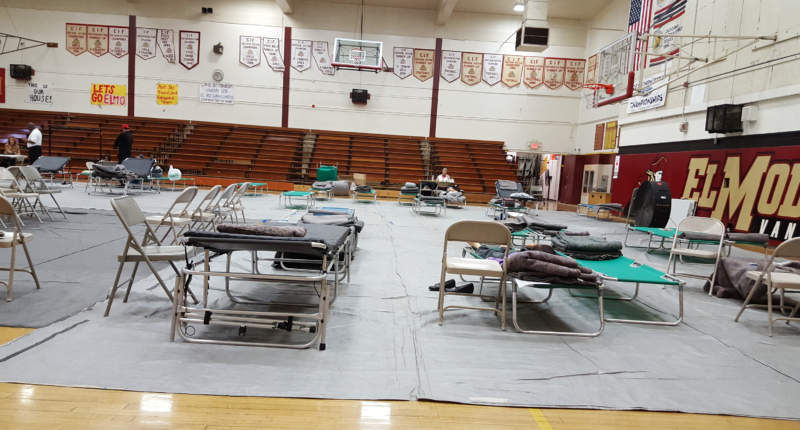 Hình ảnh bên trong trung tâm lánh nạn tại El Modena High School, Orange. (Hình: Đằng Giao/Người Việt)