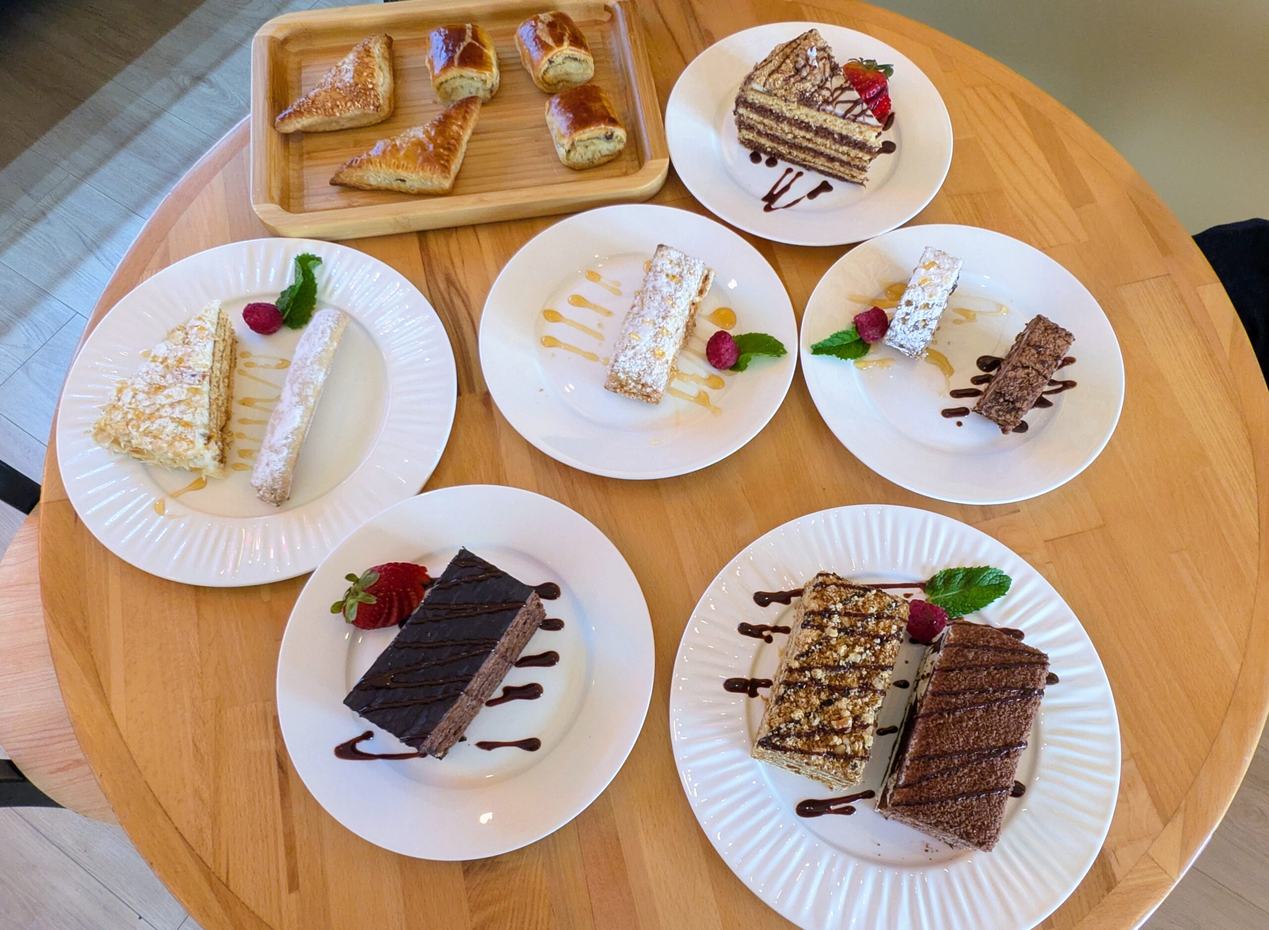 Trong tủ là những loại bánh ngọt đặc biệt của Marlenka, nhìn loại nào cũng muốn gọi thử. Sau gần 10 phút, tôi và nhóm bạn chọn một số loại bánh ngọt, còn gọi thêm vài loại bánh mặn để ăn thử.