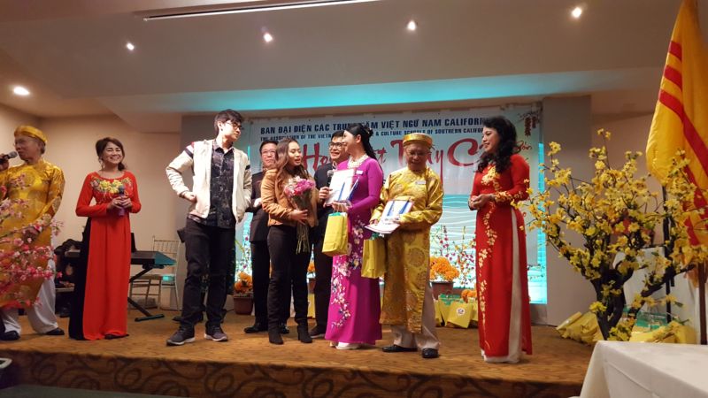 Em George Giang Nguyễn, ở Sata Ana, nói tiếng Việt một cách sành sõi: “Ba mẹ cháu cùng dạy tiếng Việt ở nhiều trường tại Orange County, từ Anaheim đến Huntington Beach. Ở nhà mọi người cùng nói tiếng Việt với nhau nên hôm nay cháu đến đây để cám ơn ba mẹ và để thấy niềm vui trong mắt ba mẹ khi thấy ngoài ba mẹ cháu, còn có bao nhiêu người khác cùng hy sinh thời giờ và công sức để duy trì tiếng Việt.”