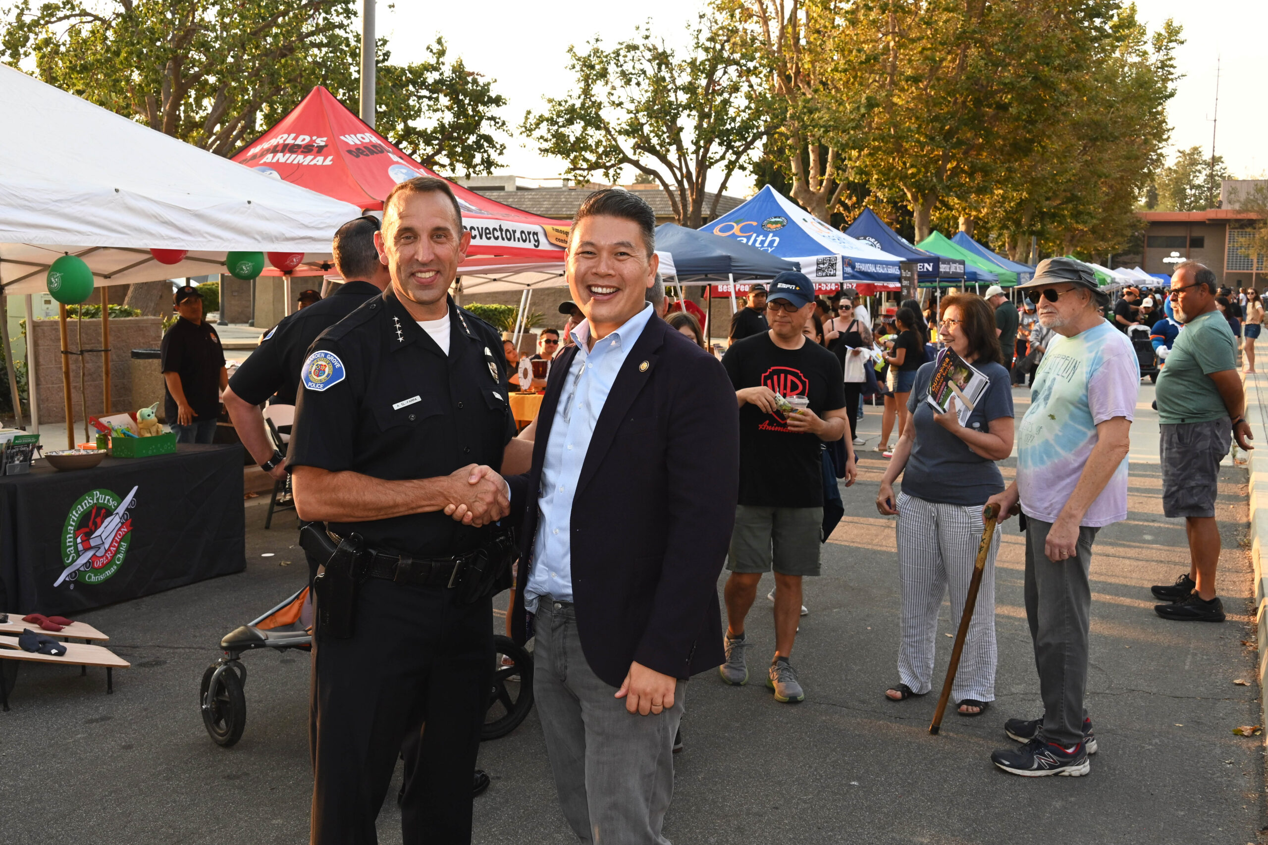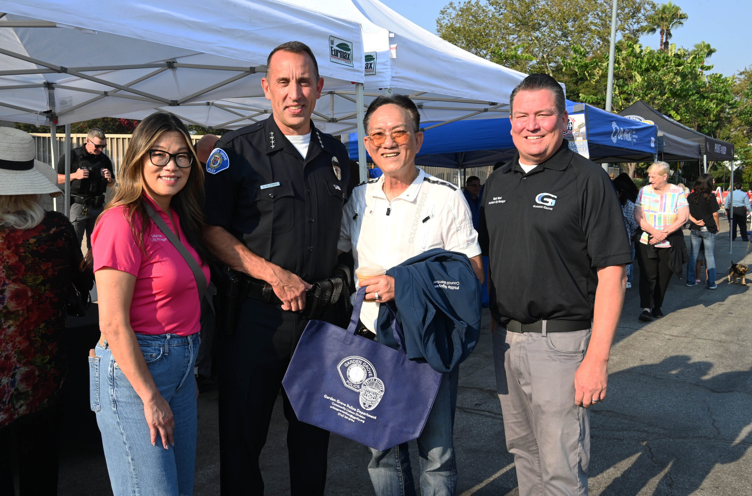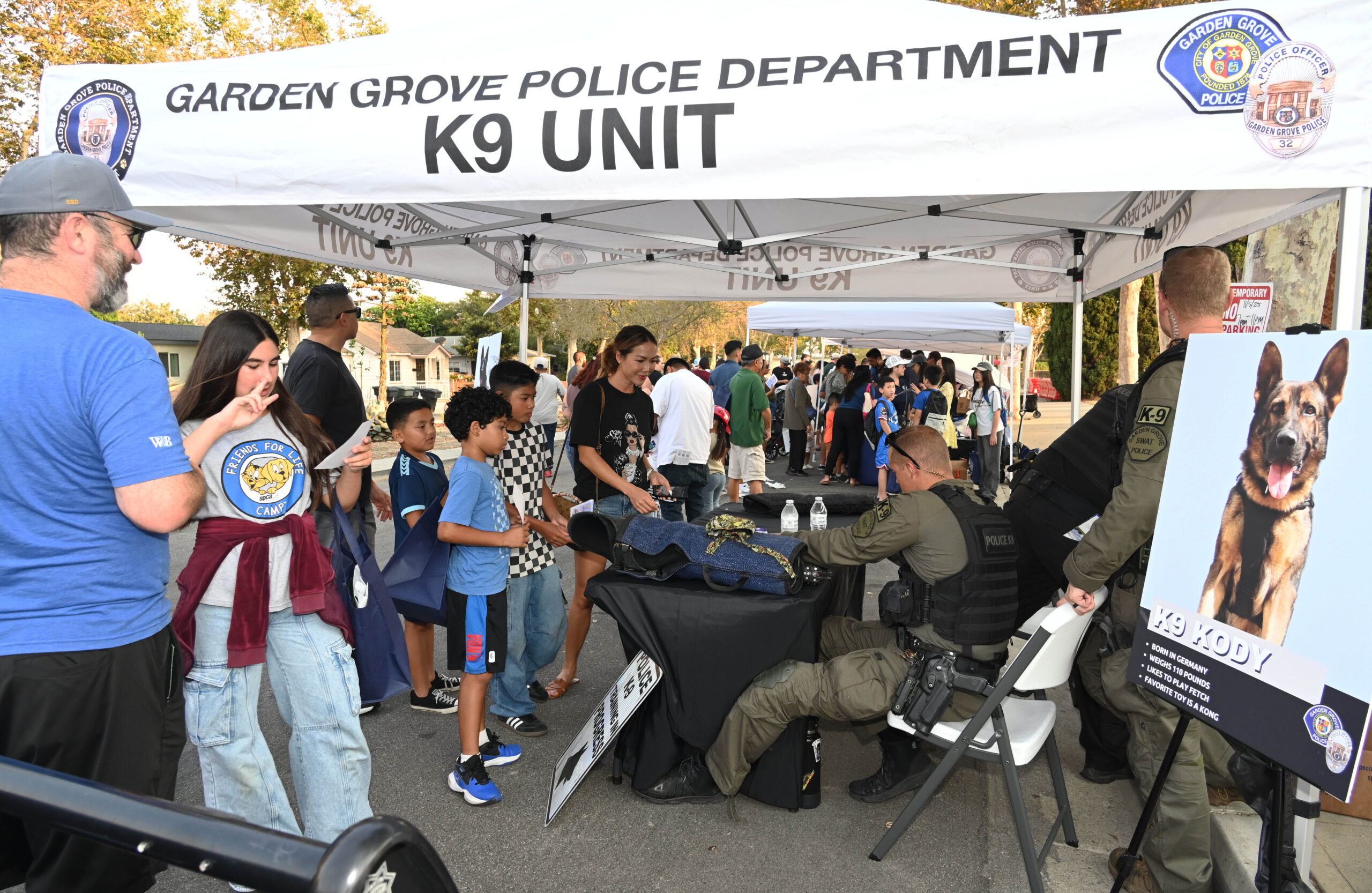 Tại đây có nhiều gian hàng của Sở Cảnh Sát Garden Grove trình bày các nhiệm vụ chuyên môn trong ngành, như truy bắt tội phạm bằng dấu vân tay, chó nghiệp vụ, các thiết bị chuyên dụng, đội đặc nhiệm SWAT Team,… được người dân đến xem và được nghe giải thích.