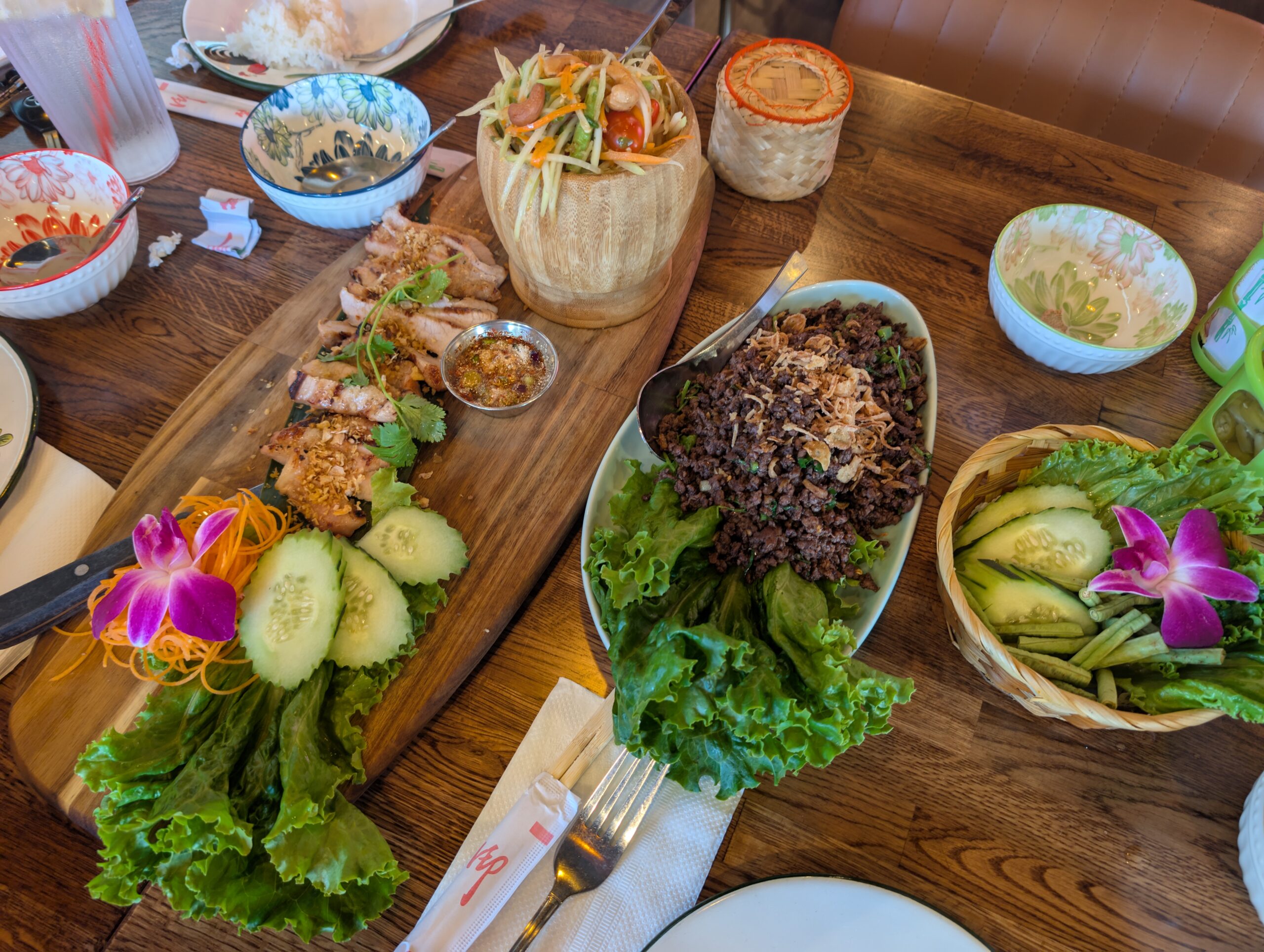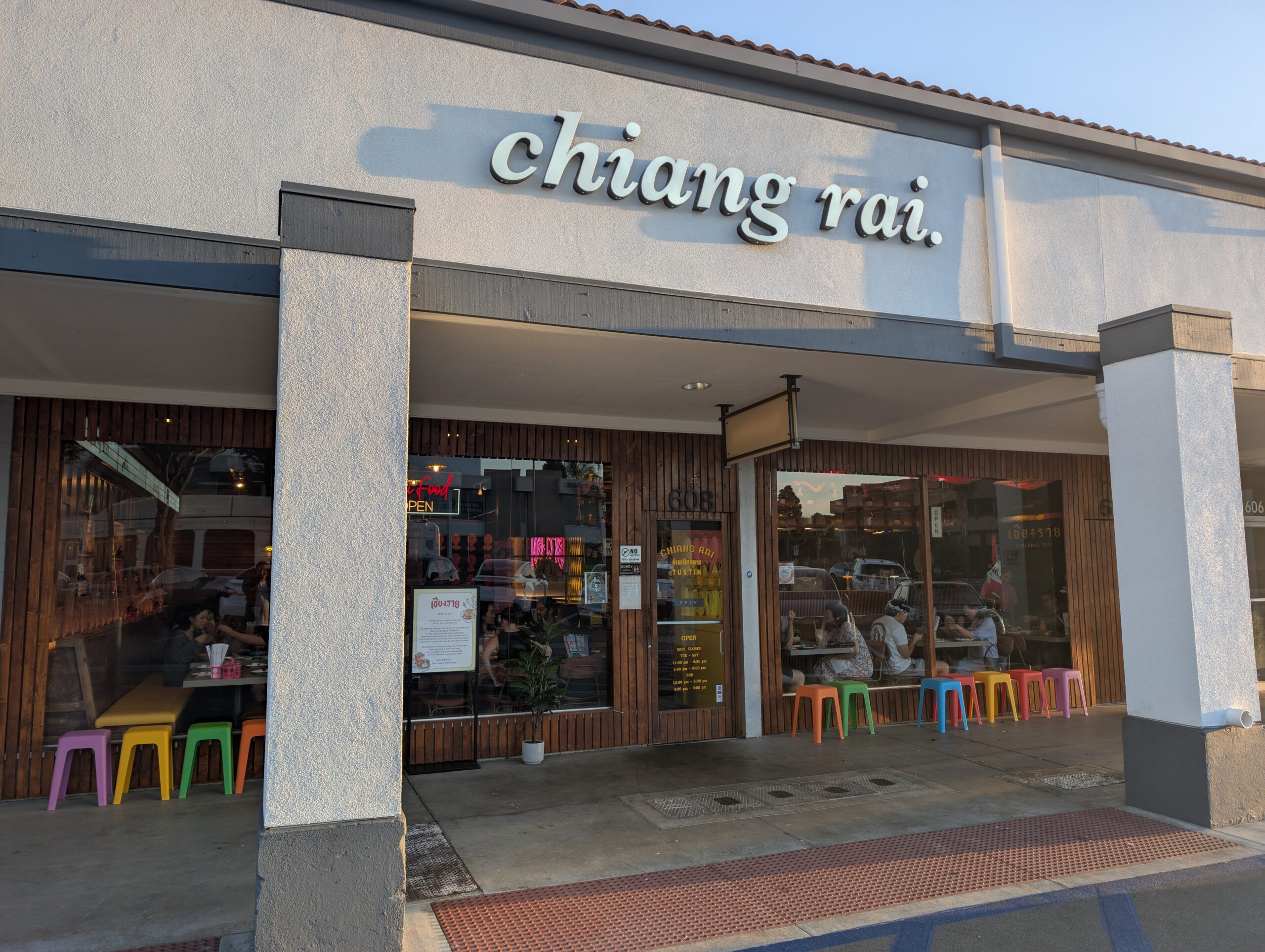 Tôi từng đi ngang nhà hàng ở Long Beach vài lần nhưng lần nào cũng không có cơ hội để vào ăn thử. Trong năm 2025, Chiang Rai quyết định mở nhà hàng thứ hai ở Tustin. Đường đi từ Little Saigon đến nhà hàng này tuy hơi xa nhưng rất dễ đi vì thực khách chỉ cần chạy thẳng đường Bolsa, sau đó thành đường 1st, qua khỏi khu trung tâm Santa Ana đến thành phố Tustin là đến nơi.