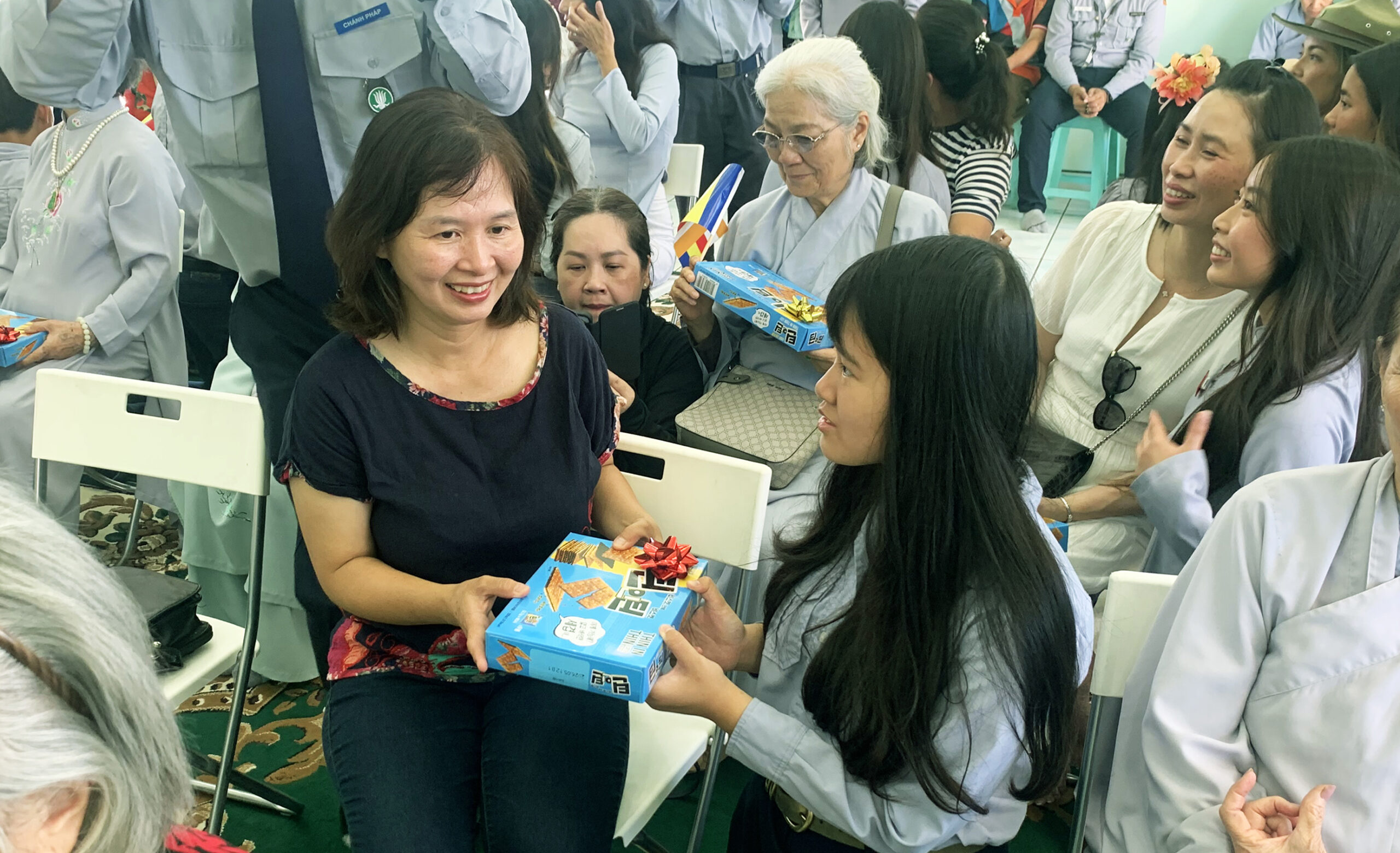 Lòng hiếu thảo đối với cha mẹ đã trở thành nét đẹp văn hóa của dân tộc Việt. Vì thế, lễ tặng quà cho cha mẹ được Gia Đình Phật Tử Chánh Pháp thực hiện. Sau đó là điệu múa “Dâng Hoa Cúng Phật.”