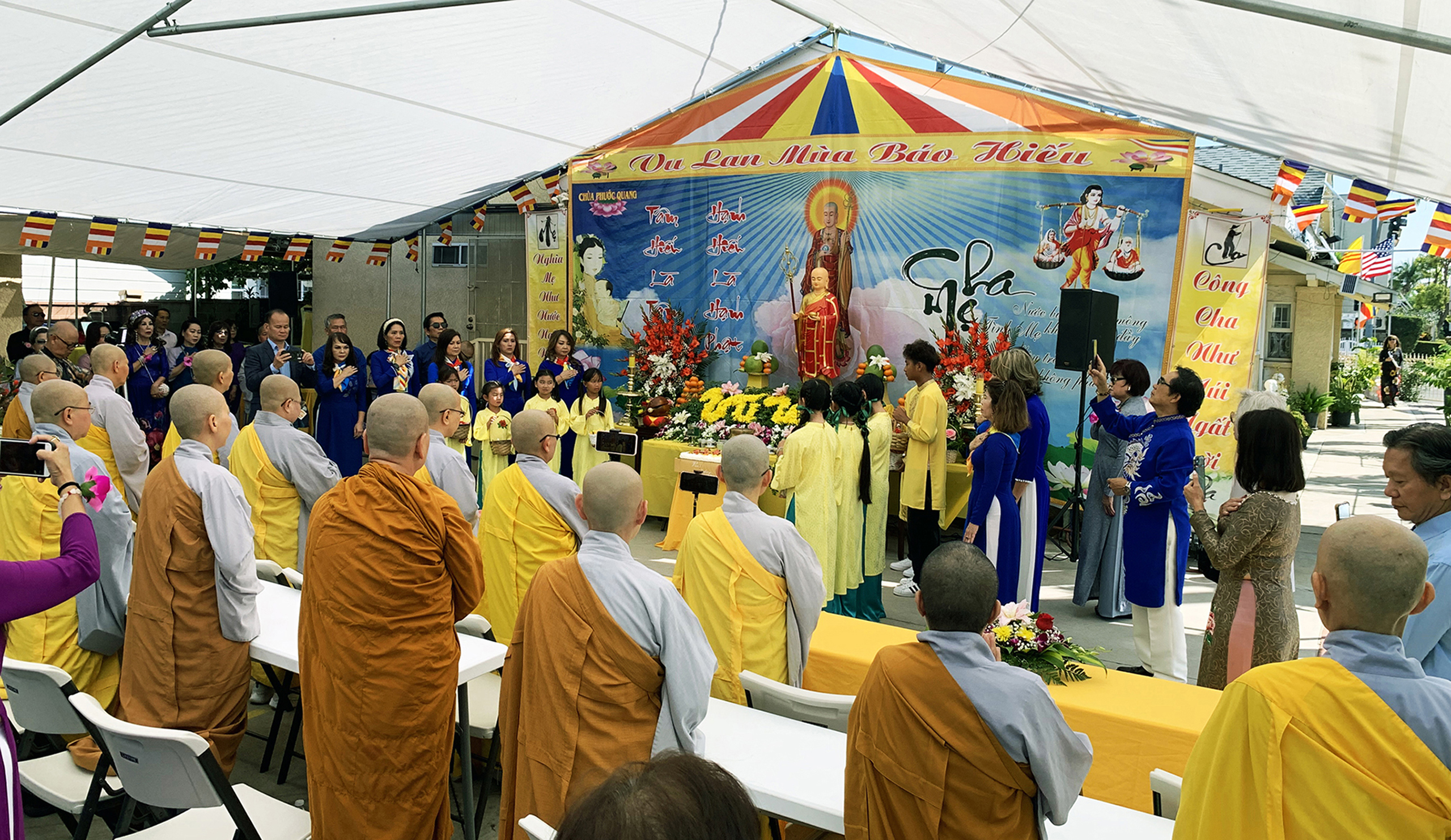 GARDEN GROVE, California (NV) – Nhiều đồng hương Phật tử đến dự Đại Lễ Vu Lan Báo Hiếu tại chùa Phước Quang, Garden Grove, sáng Thứ Bảy, 20 Tháng Chín.
