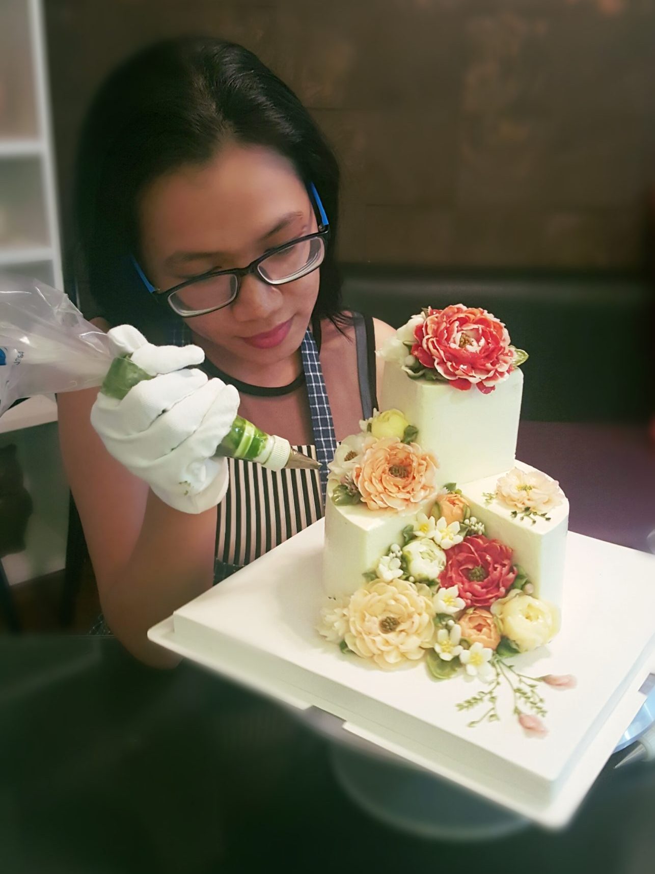 Từ đó, mỗi ngày cô say sưa “nâng cao tay nghề,” làm ra nhiều loại bánh phù hợp khẩu vị của người Việt, trang trí những chiếc bánh kem với nhiều loại hoa khác nhau.