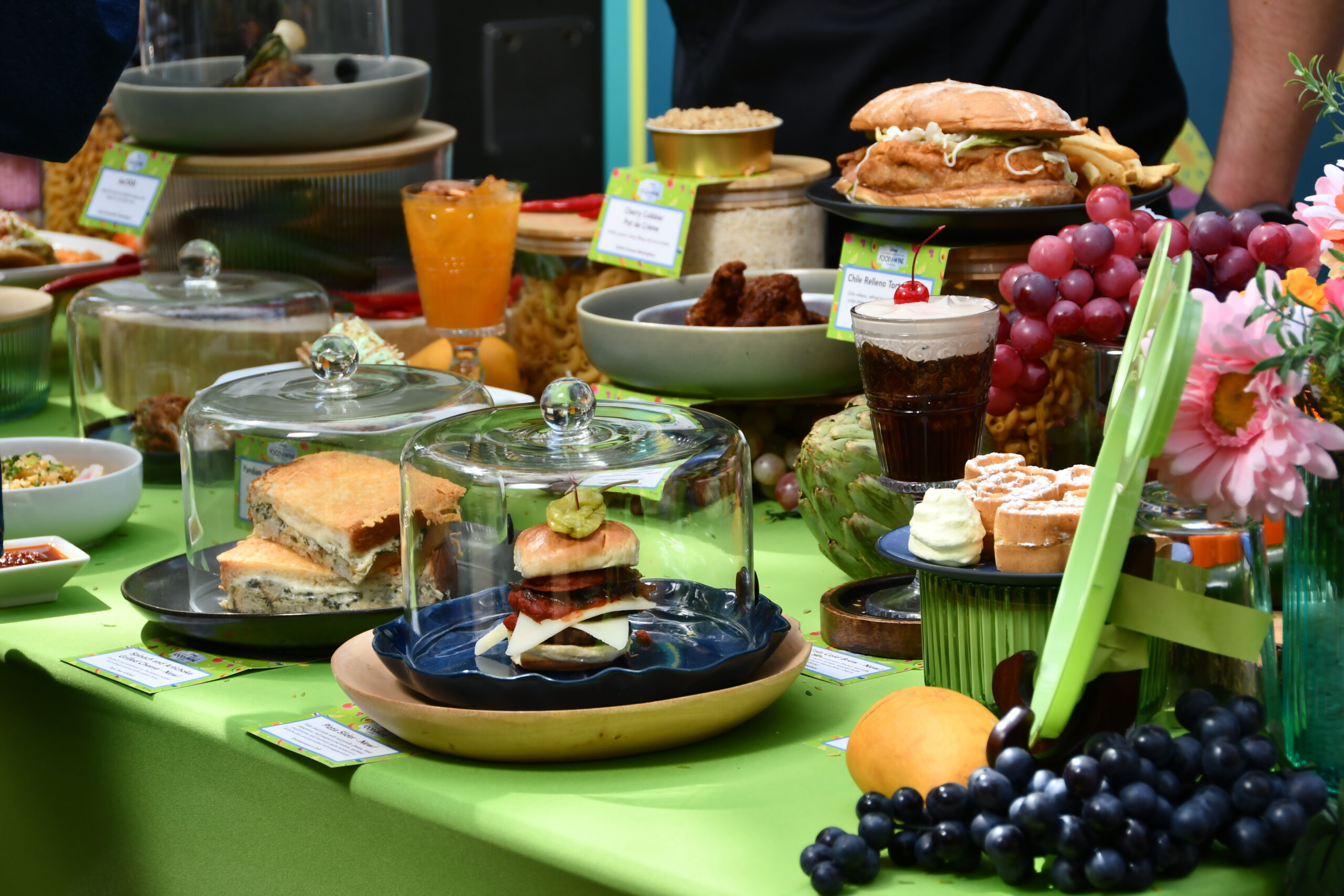 Khi đến Disney California Adventure trong dịp lễ hội “Disney Food & Wine Festival,” du khách sẽ nhận được một cuốn sổ tay có danh sách tám gian hàng chỉ mở trong lúc này cùng các món ăn và thức uống đặc biệt của họ để khám phá. Những gian hàng có các món ăn đến tráng miệng thể hiện sự đa văn hóa ẩm thực của California vì có ảnh hưởng từ Mexico, nhiều nước Á Châu, và còn có những món chỉ có thể tìm thấy được ở California như những món “fusion” kết hợp ẩm thực của mấy quốc gia vào một món.