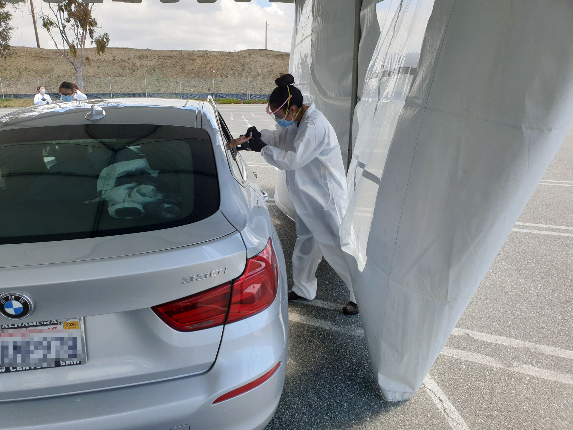 Đến lượt, người muốn thử nghiệm lái xe vô lều, đưa ngón tay ra ngoài nếu muốn thử máu. “Còn nếu muốn ‘nasal swap’ thì chúng tôi sẽ cho que bông gòn vào mũi,” cô Carr nói.