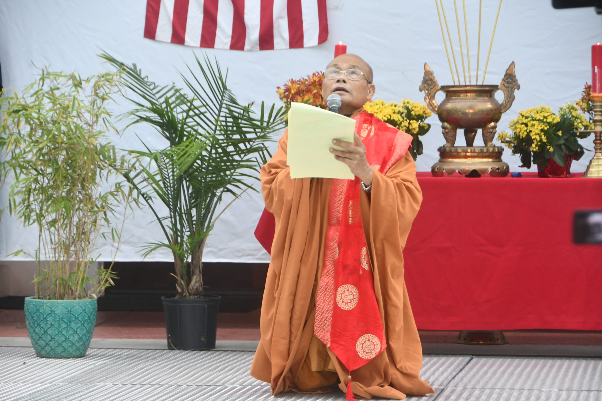 “Hôm nay chúng ta cùng có mặt tại đây, một địa điểm tôn nghiêm là Trung Tâm Công Giáo Việt Nam. Dưới mái nhà tâm linh chung, Hội Đồng Liên Tôn Việt Nam tại Hoa Kỳ xin gửi đến quý vị một lời chào trân trọng, lời tri ân sâu sắc và lời chúc lành bình an đầy trân phúc của mùa Lễ Tạ Ơn,” hòa thượng nói.
