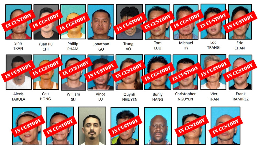 Trong số 22 nghi can đã bị bắt có nhiều người gốc Việt như Sinh Võ, Phillip Phạm, Trung Võ, Tom Lưu, Lộc Trang, Quỳnh Nguyễn, Chistopher Nguyễn và Việt Trần.
