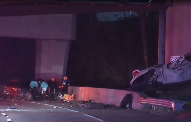 Nhân chứng nói với CHP là chiếc SUV màu trắng lái một cách cầu thả trước khi va vào chiếc SUV màu sẫm, làm cả hai chiếc bị lật, và làm chiếc màu trắng văng qua bên kia bức tường thấp giữa xa lộ ngăn hai hướng giao thông ngược chiều.