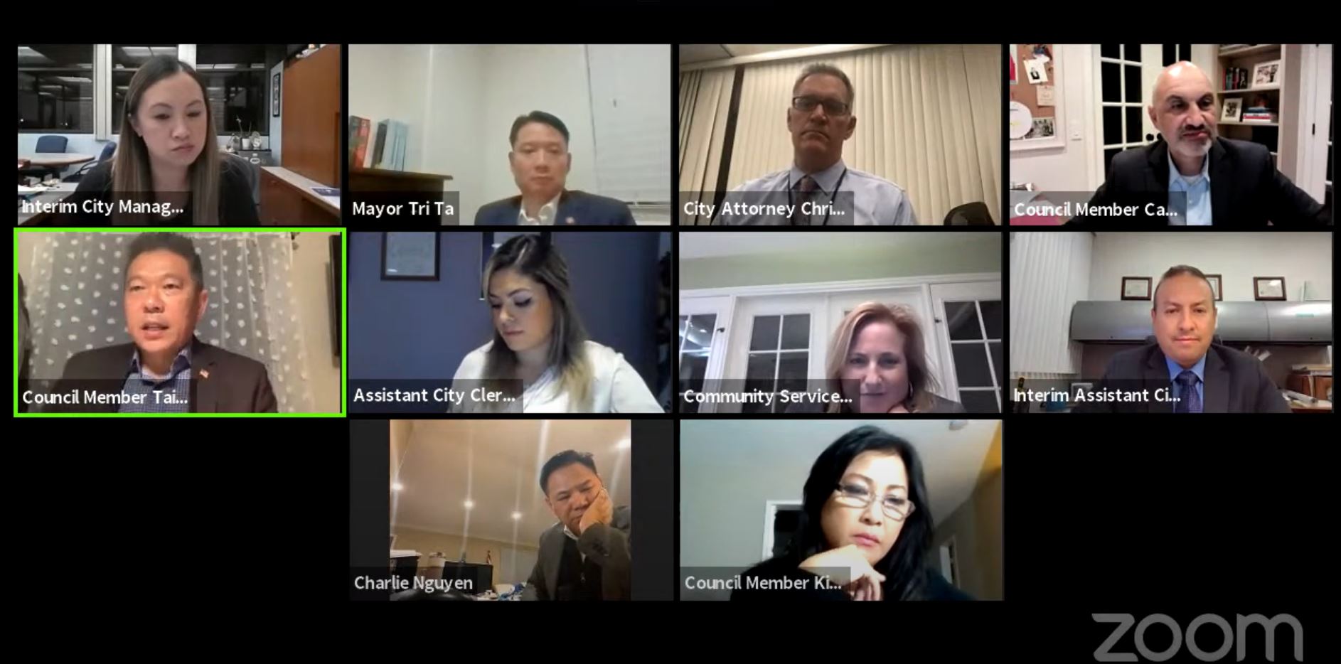 Nghị Viên Tài Đỗ từng viết trên Facebook vào Tháng Sáu, 2019: “Westminster chính thức trở thành Thành Phố Hồ Chí Minh vì Trí Tạ, Kimberly Hồ và Chí (Charlie) Nguyễn.”