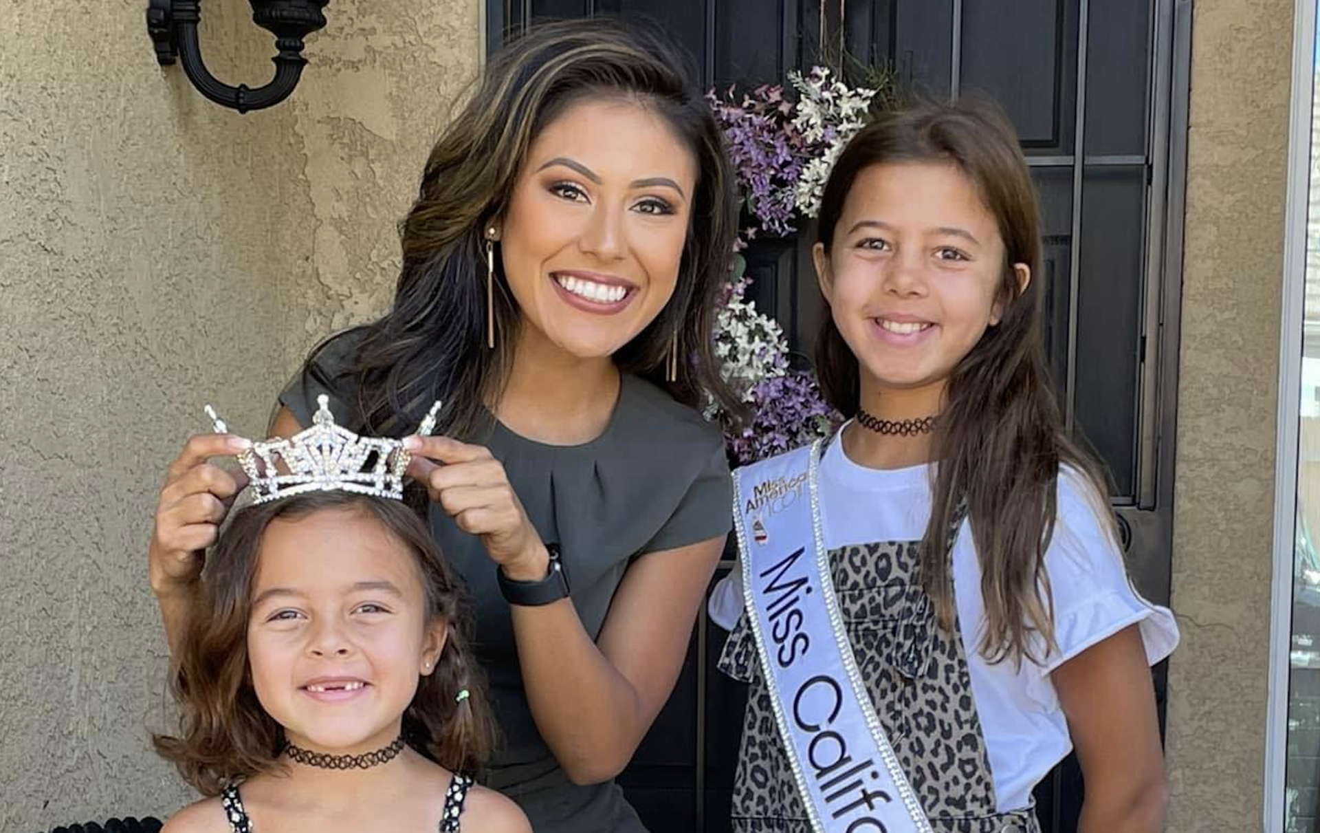 Hoa hậu Jazmin Avalos chụp hình cùng hai em thiếu nhi. (Hình: Jazmin Avalos Facebook)