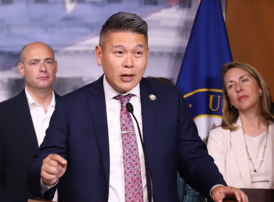 Dân Biểu Derek Trần trong một cuộc họp báo tại Hạ Viện Hoa Kỳ. (Hình: Văn Phòng Dân Biểu Derek Trần)