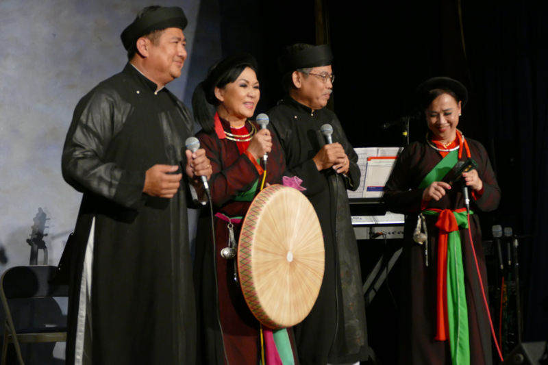 Quan Họ Bắc Ninh với tứ ca: Bá Toàn, Hữu Hòa, Xuân Mai, Phi Yến. (Hình: Văn Lan/Người Việt)
