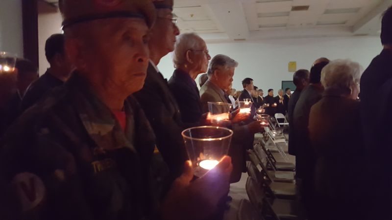 SANTA ANA, California (NV) – Đông đảo đồng hương thuộc nhiều lớp tuổi và đại diện nhiều đoàn thể vừa tham dự đêm thắp nến cầu nguyện cho quê hương Việt Nam do Hội Đồng Liên Tôn Việt Nam tại Hoa Kỳ tổ chức vào tối Thứ Sáu, 27 Tháng Tư, tại Trung Tâm Công Giáo, Santa Ana.