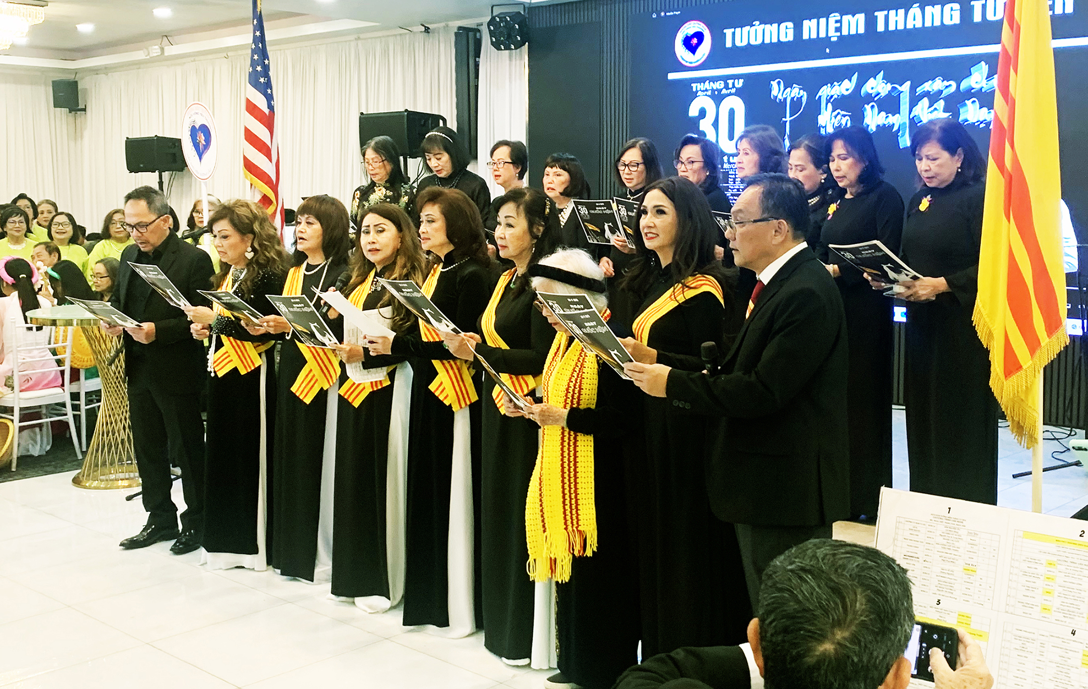 WESTMINSTER, California (NV) – Đông đảo đồng hương đến dự chương trình văn nghệ “Đêm Tưởng Niệm Tháng Tư Đen,” do Nhóm Quỳnh Hoa tổ chức, chiều Thứ Sáu, 24 Tháng Tư, tại nhà hàng White Palace 1, thành phố Westminster.