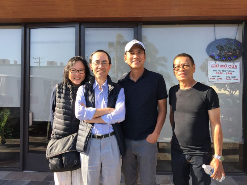 Ông Lê Quốc Khánh (thứ hai, từ trái sang) và bà Khanh Phạm (ngoài cùng bên trái) bay từ Paris sang California để hòa mình vào đợt tưởng niệm Tháng Tư Đen năm nay. (Hình: Minh Phú/Người Việt)