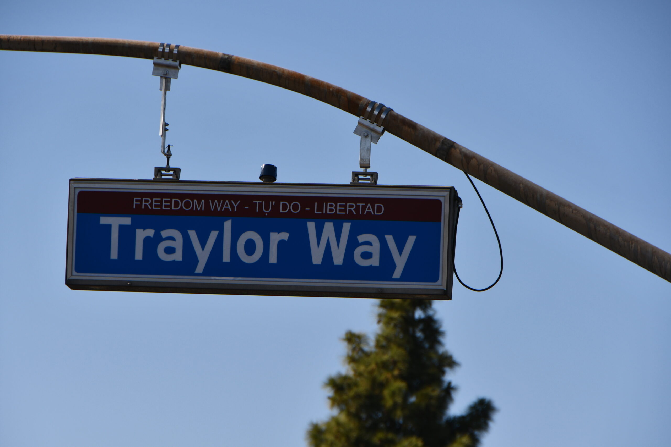 Bảng tên đường Traylor/Woodbury bây giờ có thêm bảng nhỏ ở trên với dòng chữ: “Freedom Way – Tự Do – Libertad” là từ “tự do” trong tiếng Anh, tiếng Việt, và tiếng Tây Ban Nha.