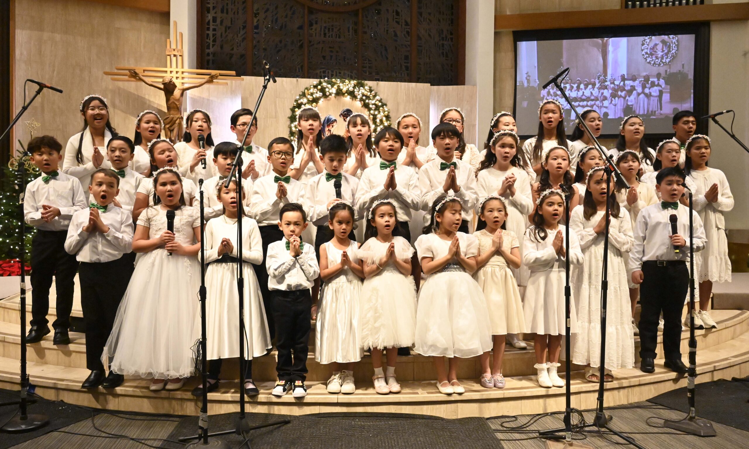 Ca Đoàn Giới Trẻ trong ca khúc “Silent Night và O Christmas Joy.” (Hình: Văn Lan/Người Việt)