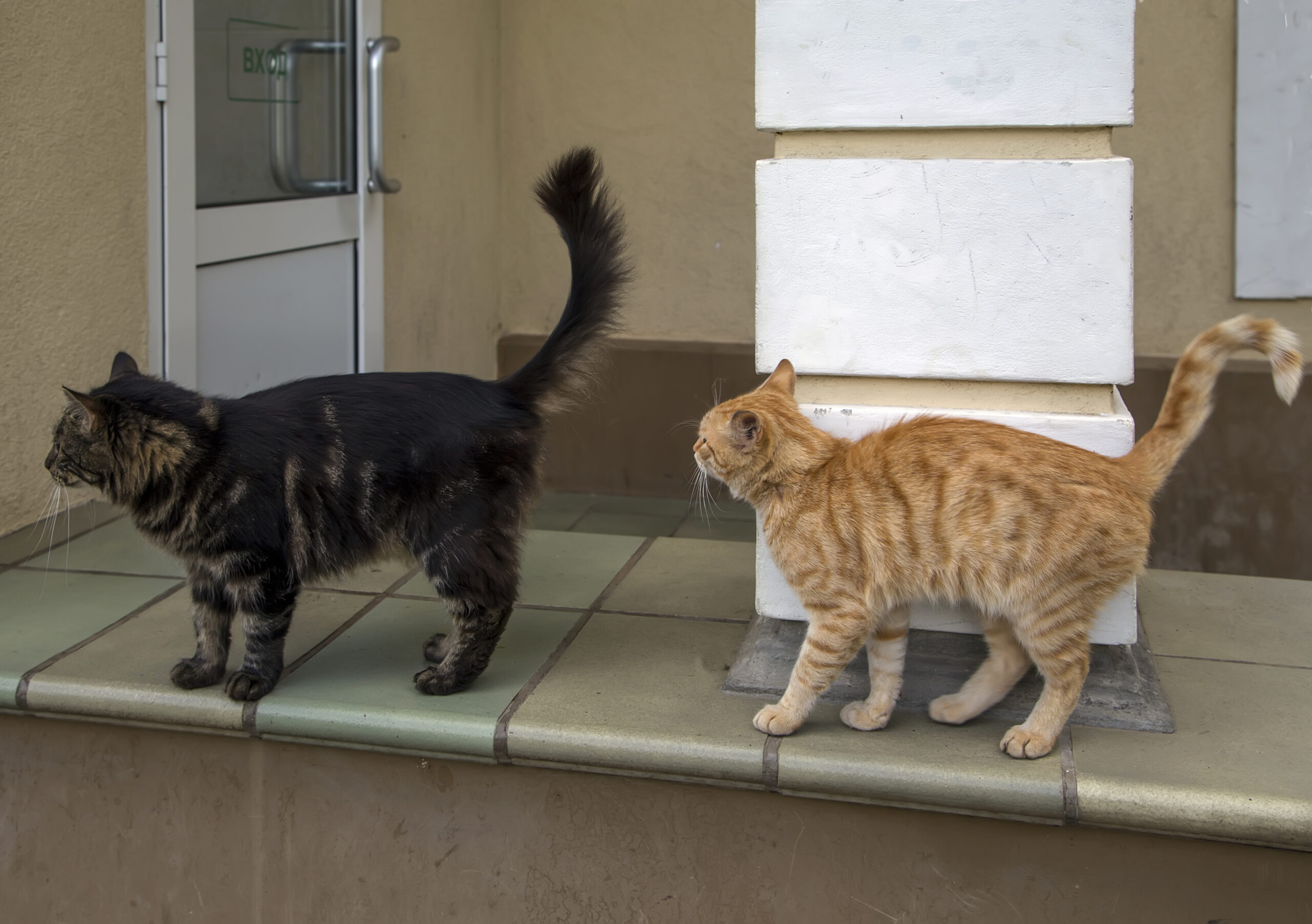 Hai con mèo trước một căn nhà. (Hình minh họa: Storyblocks)
