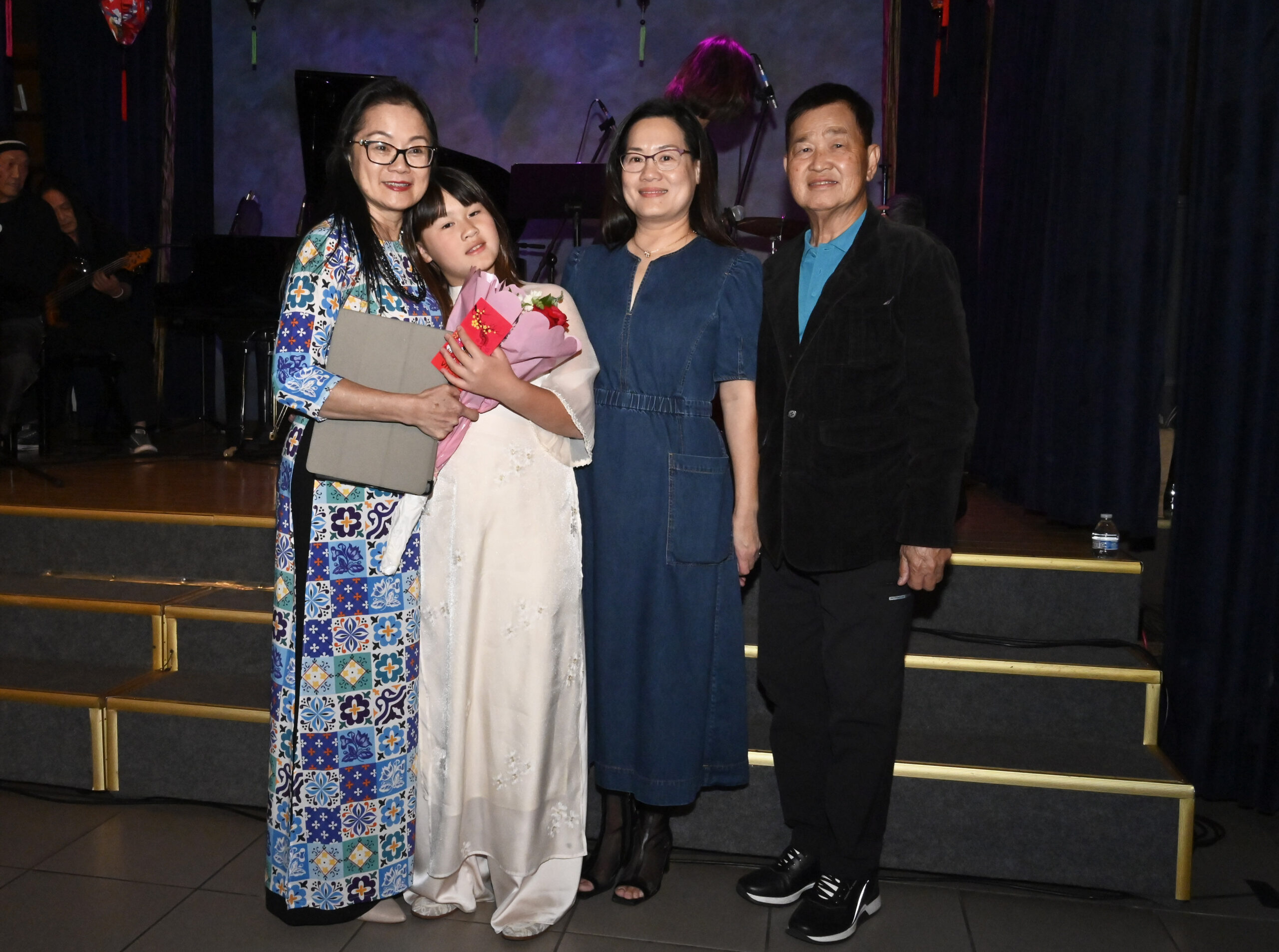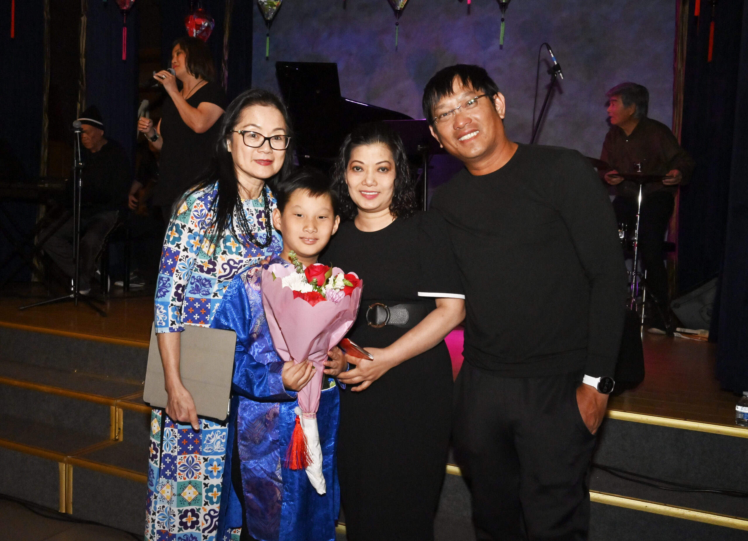 Ông Trần Nguyên Thắng cùng vợ, cô Mỹ Tiên, đi ủng hộ con gái Amelia, một nhạc sinh và là MC nhỏ tuổi, xuất sắc giới thiệu chương trình bằng tiếng Việt lưu loát không thua gì tiếng Anh.