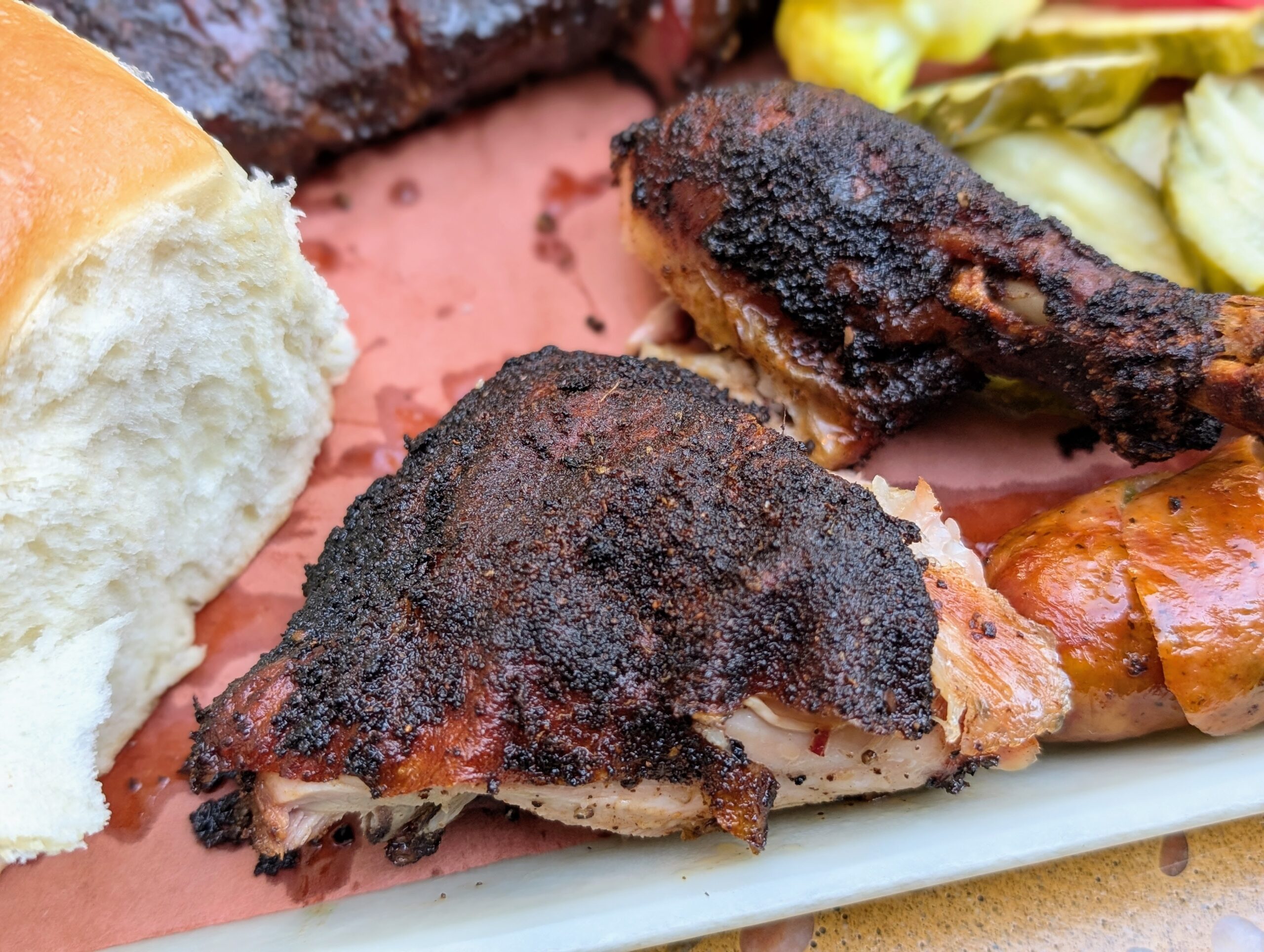 Tiếp theo là thịt gà nướng, và Harper Barbecue cho thực khách chọn giữ thịt trắng là ức gà hay phần thịt sậm là đùi gà, và tôi chọn phần thịt đùi. Thịt gà được nướng thơm phức, có lớp da thơm giòn và đậm mùi khói, còn thịt thì không khô chút nào, lại được nêm nếm đơn giản để làm tô điểm mùi vị tự nhiên của loại gà Jidori có phẩm chất cao.