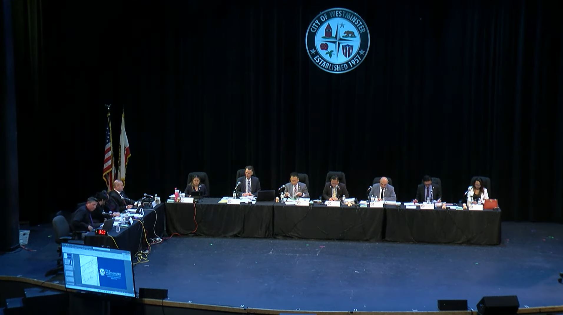 WESTMINSTER, California (NV) – Hội Đồng Thành Phố (HĐTP) Westminster thảo luận về một số vấn đề liên quan đến cộng đồng Little Saigon tại phiên họp tối Thứ Tư, 24 Tháng Chín. Các vấn đề đó là việc sa thải ông Tony Bùi, ủy viên Ủy Ban Quy Hoạch, thông qua nghị quyết cấp căn cước cử tri, lên án tổ chức VietRISE, và lên án các hành động lăng mạ lá cờ Mỹ.
