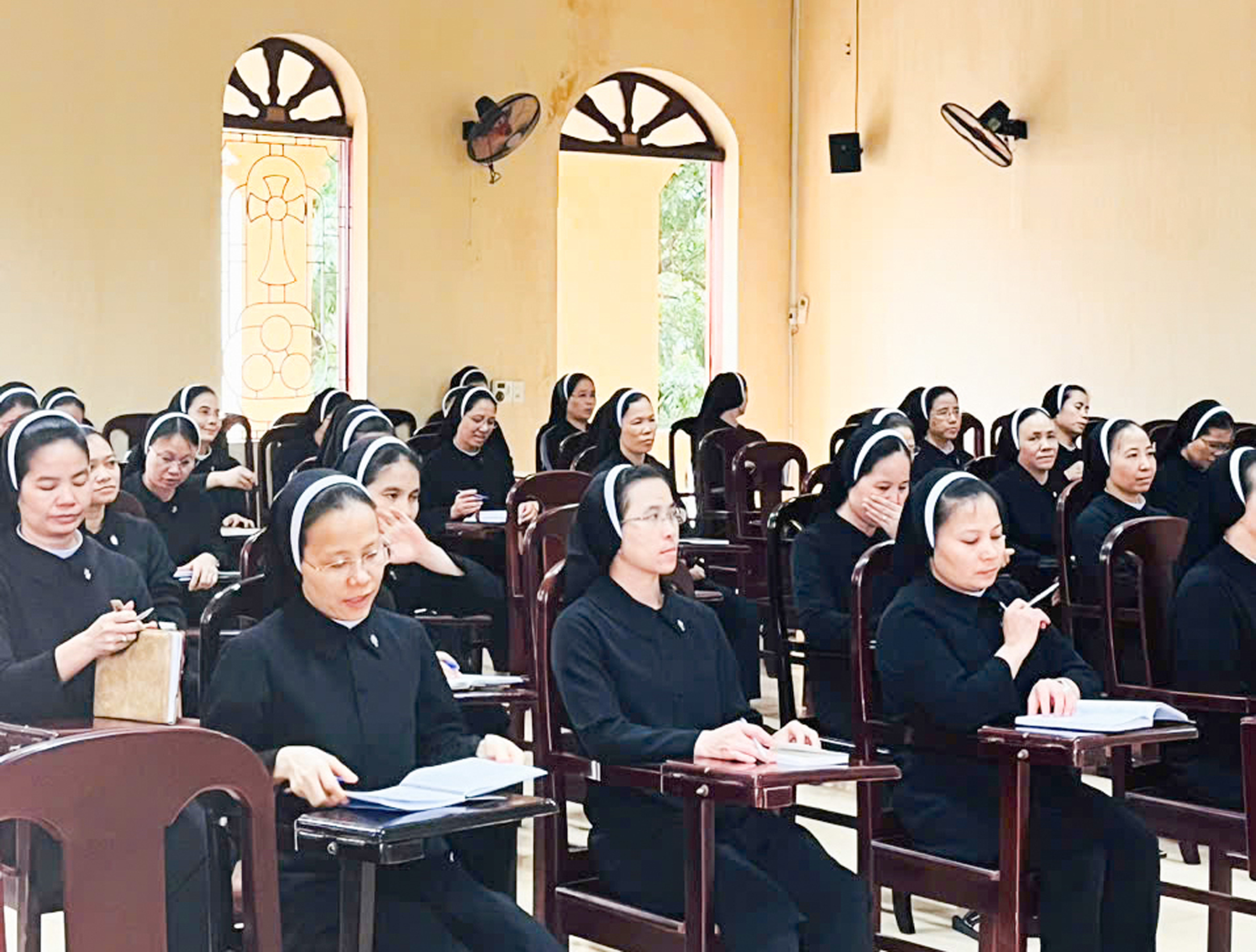 Linh Mục Nguyễn Văn Tuyên, cựu linh mục chánh xứ Westminster và là cố vấn của hội dòng, cho biết thêm: “Nhìn lại lịch sử, trong thời chiến tranh, nhà dòng không may bị những trái bom rơi lầm làm tan nát thành bình địa, cướp đi mạng sống của soeur bề trên và một số soeur khác. Từ đó nhà dòng bị giải tán, tưởng chừng như bị xóa sổ. Nhưng nhờ lòng quảng đại của quý vị đã giúp vực dậy hội dòng, từ con số còn lại hơn 20 soeur, ngày nay đã có một số đông hàng trăm soeur trẻ dâng cuộc đời để phụng sự Chúa và phục vụ tha nhân. Các soeur cần phải được đào tạo để có kiến thức và chuyên môn để công việc phục vụ được hiệu quả hơn.”