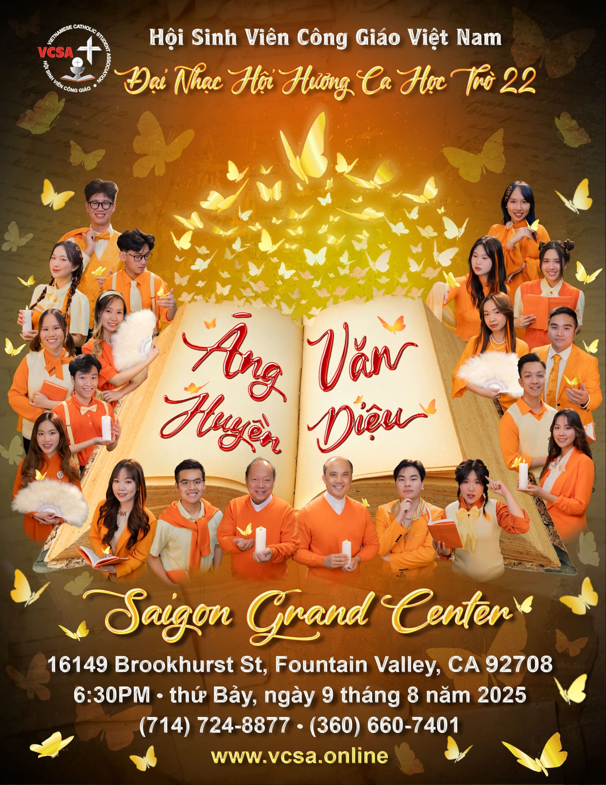 FOUNTAIN VALLEY, California (NV) – Hội Sinh Viên Công Giáo Việt Nam (VCSA) sẽ tổ chức Hương Ca Học Trò lần thứ 22, một đại nhạc hội quy mô vào lúc 6 giờ 30 phút tối Thứ Bảy, 9 Tháng Tám, tại rạp hát Saigon Grand Center, 16149 Brookhurst St, Fountain Valley, CA 92708.