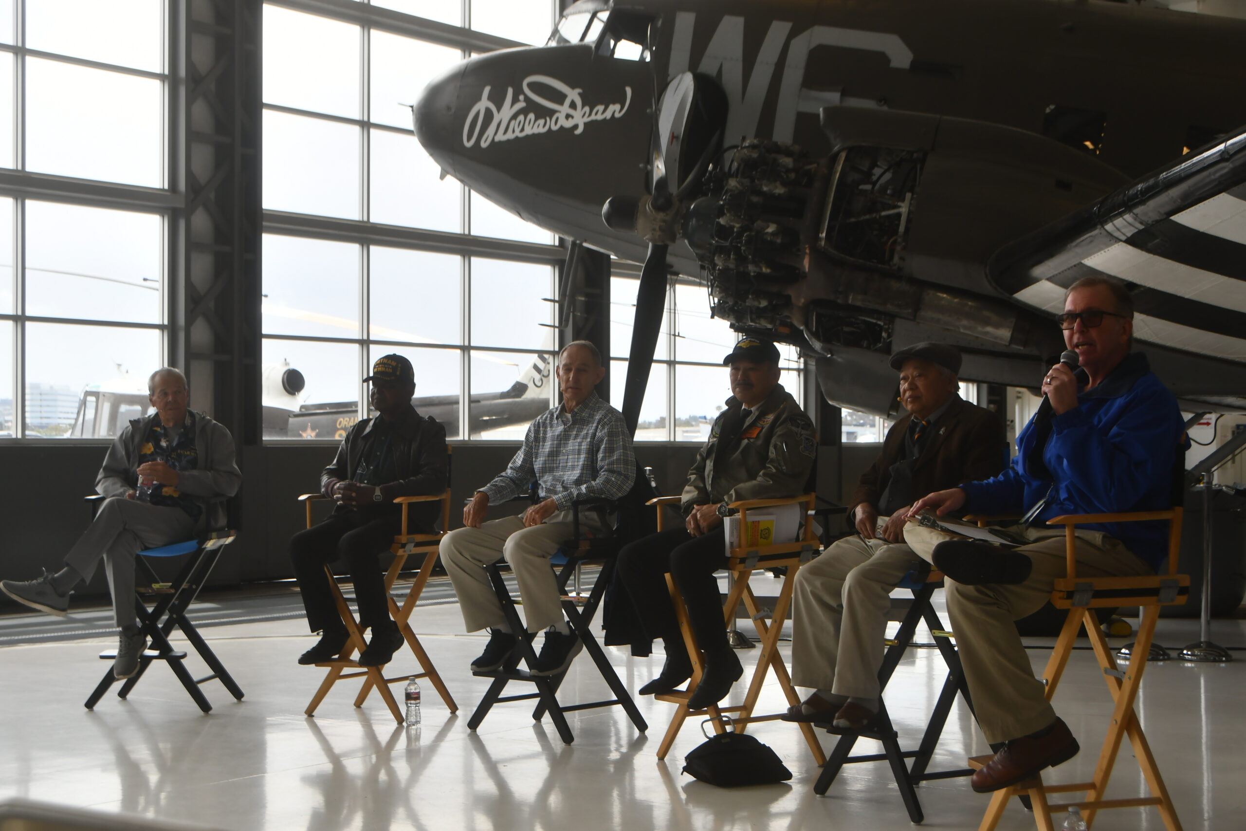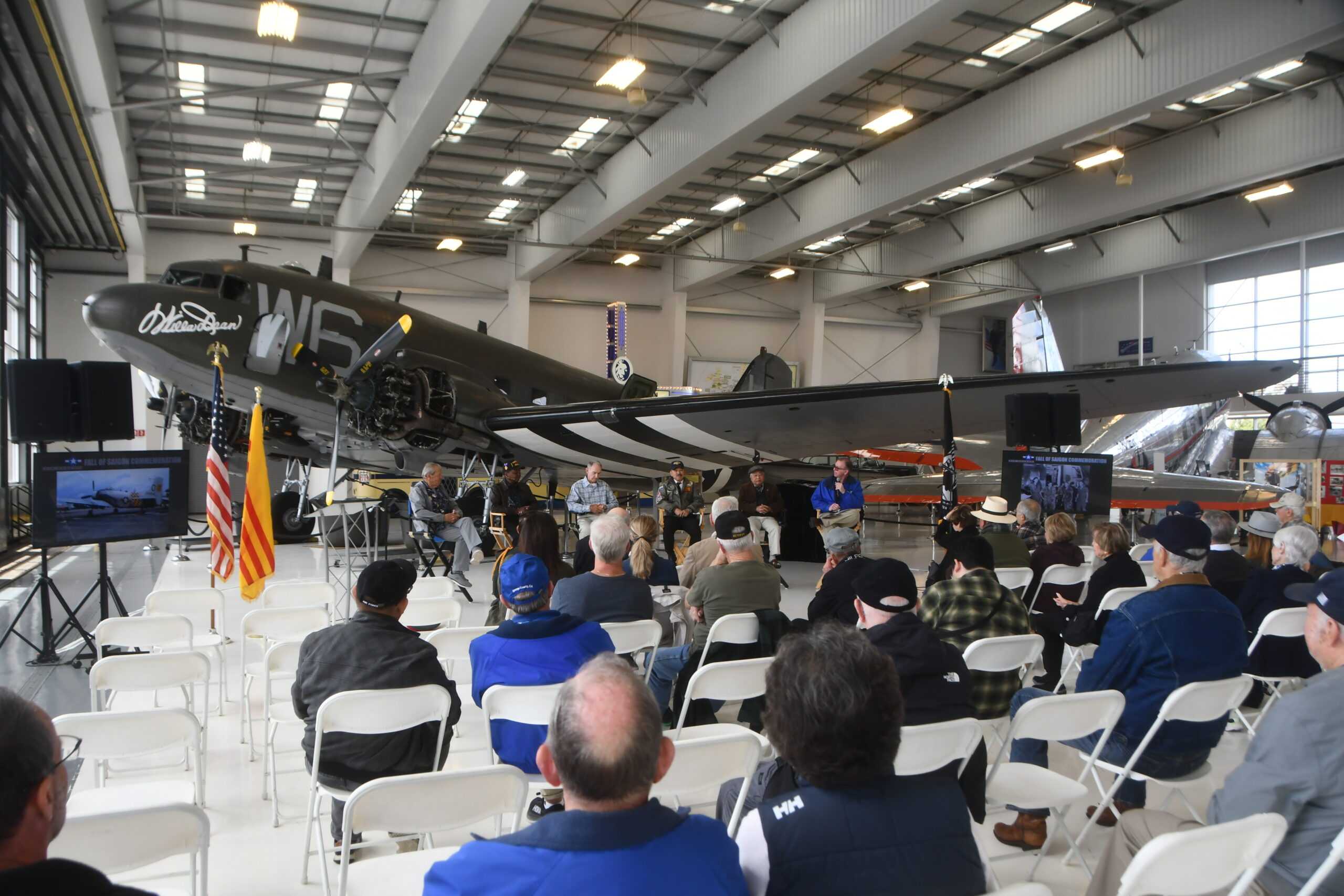 Các diễn giả của cuộc thảo luận tại bảo tàng Lyon Air Museum. (Hình: Thiện Lê/Người Việt)