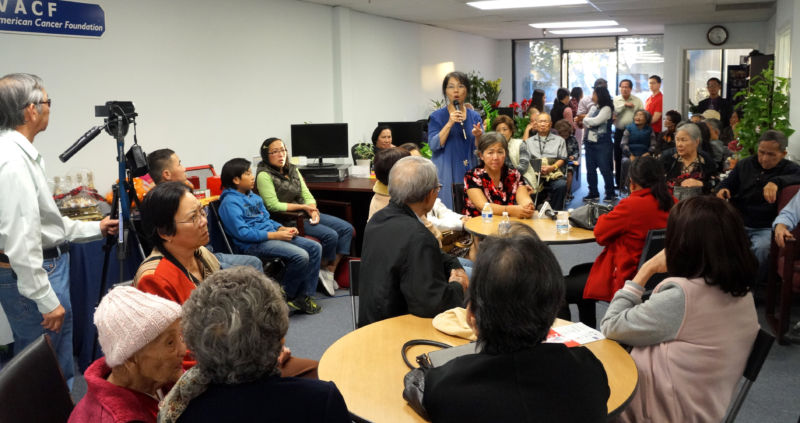 Bà Đặng Cấm, cư dân Garden Grove, định cư tại Mỹ được hơn 12 năm, chia sẻ: “Hội Ung Thư Việt Mỹ đã giúp tôi hơn 10 năm qua kể từ lúc bác sĩ cho biết tôi có triệu chứng ung thư. Trong 10 năm qua, nhờ sự giúp đỡ của những nhân viên trong hội tìm bác sĩ chữa trị, đã giúp tôi về tinh thần cũng như cách trị liệu, nên bệnh của tôi cũng được thuyên giảm khá nhiều.”