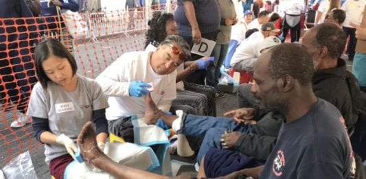 Hơn 10,000 người vô gia cư ở Los Angeles không chỉ được tặng mền, thức ăn, còn được các thiện nguyện viên ân cần rửa chân…