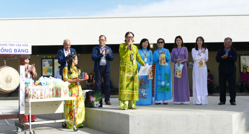 Vinh danh các thầy cô trong ngày Lễ Tạ Ơn tại Trung Tâm Việt Ngữ Hồng Bàng. (Hình: Văn Lan/Người Việt)