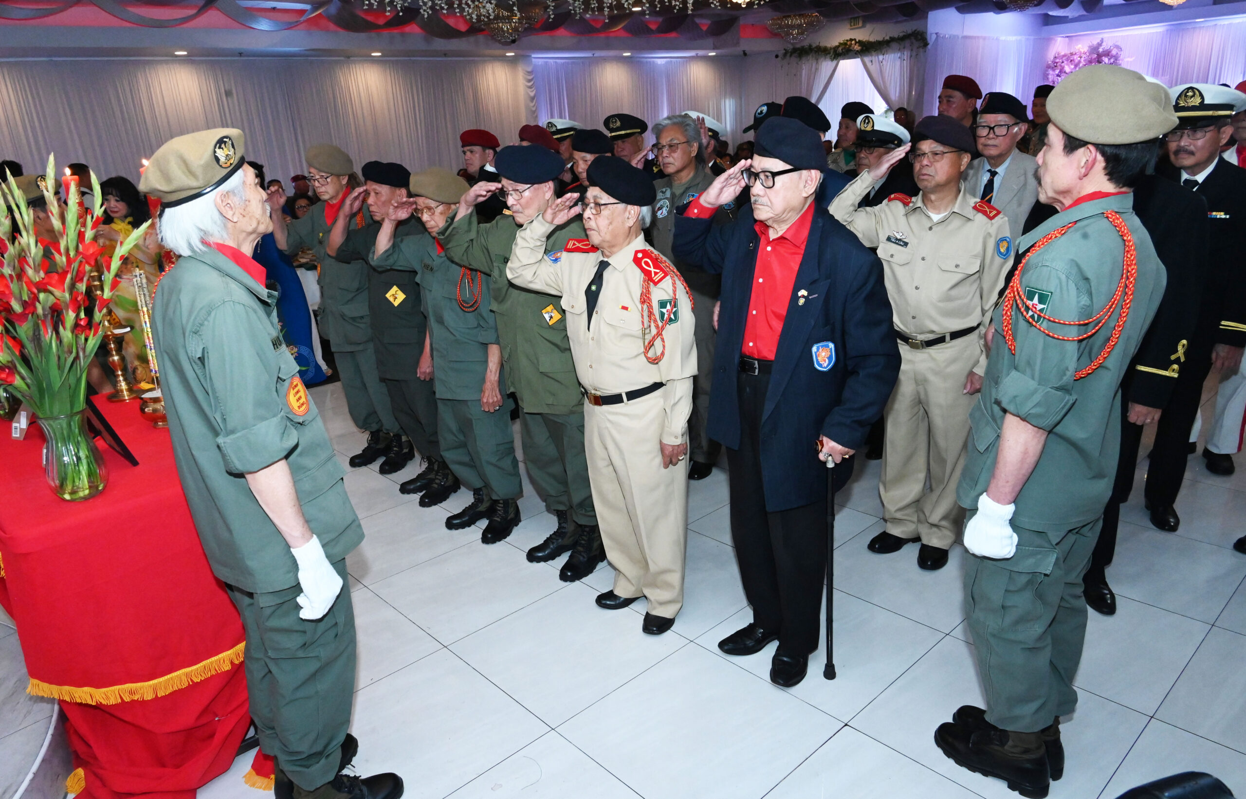 Tiếp đến, các niên trưởng Sư Đoàn 5 Bộ Binh và đại diện các hội đoàn cựu quân nhân Quân Lực VNCH lên chào kính hương linh của hai vị tướng cựu tư lệnh.