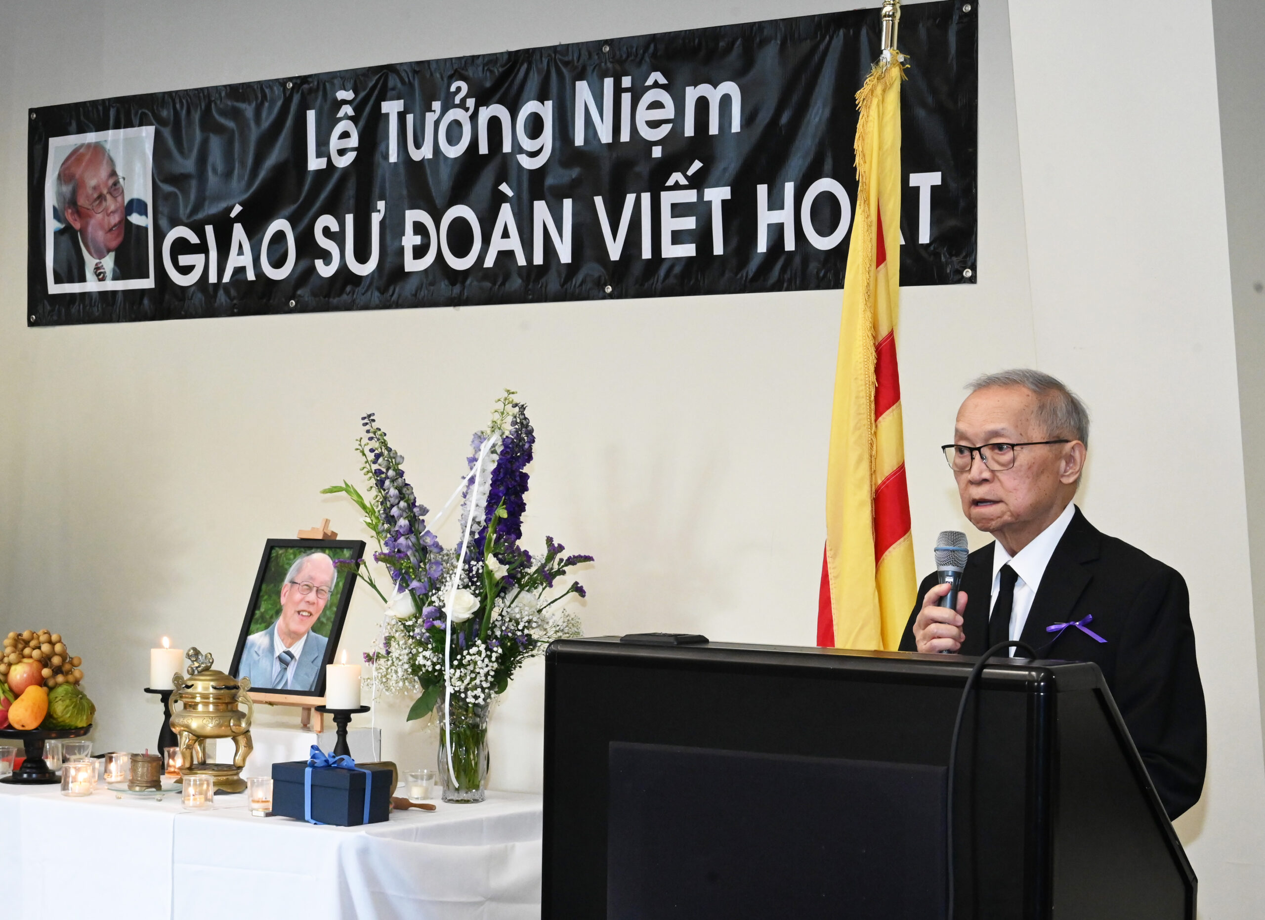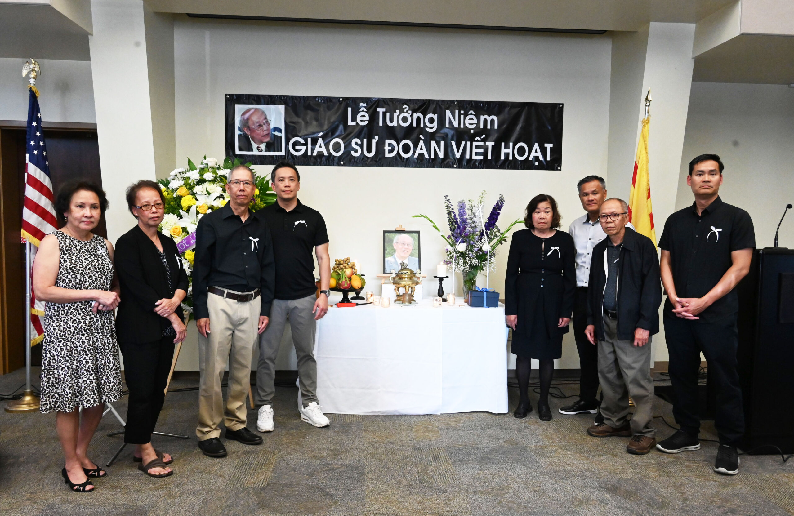 WESTMINSTER, California (NV) – Lễ tưởng niệm Giáo Sư Đoàn Viết Hoạt do các thân hữu tổ chức vào chiều Thứ Sáu, 20 Tháng Sáu, tại Phòng Thương Mại Westminster, do ông Larry Nguyễn, giám đốc Trung Tâm Chăm Sóc Người Cao Niên Sacramento (cơ quan bảo trợ), Luật Sư Đỗ Thái Nhiên trưởng ban tổ chức ủy nhiệm, và MC Nancy Nguyễn điều khiển chương trình.