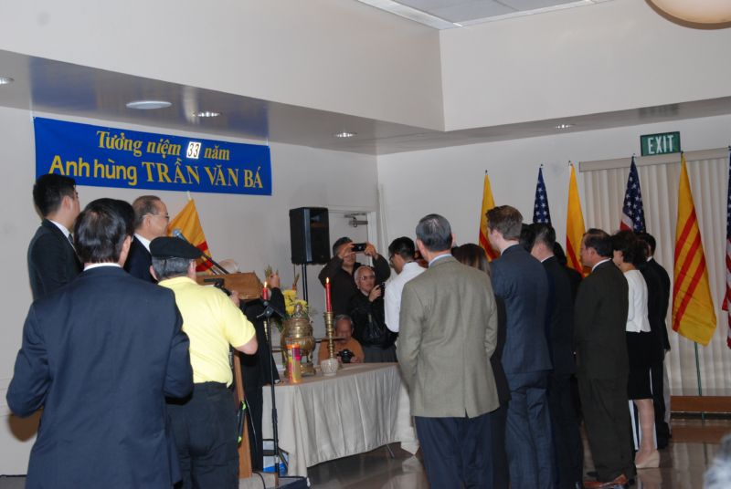WESTMINSTER, California (NV) – Chiều Chủ Nhật 21 Tháng 1, tại phòng hội thành phố Westminster, lễ tưởng niệm người chiến sĩ anh hùng Trần Văn Bá đã diễn ra với sự tham dự khá đông của cộng đồng người Việt tại Nam California.