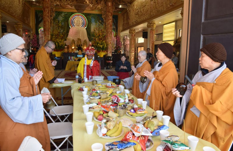 Hòa Thượng Thích Minh Mẫn hoan hỉ giải thích tiếp: “Trong ngày rằm Tháng Giêng, có một lễ rất quan trọng, đó là lễ cúng thí thực. Theo lời Phật dạy, chúng ta không chỉ giúp đỡ chia sẻ cho người còn sống, mà cả những người đã chết. Họ chỉ mất phần thân xác, nhưng thần thức của họ vẫn còn vương vấn nợ nần lẫn khuất đâu đây, đó là nguời thân của mình, những ân nhân, những vong linh anh hùng chiến sĩ, hoặc những người chết vì đủ loại nguyên nhân, vẫn còn vướng bận trong cuộc đời phiền não này. Vì lòng từ bi thương xót chúng sinh, với mọi tấm lòng đóng góp của Phật tử, chùa lập đàn tràng bố thí, để người chết được thọ hưởng nghe kinh mà siêu thoát, người sống được hân hạnh làm ăn tấn tới!”