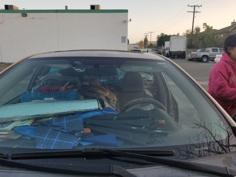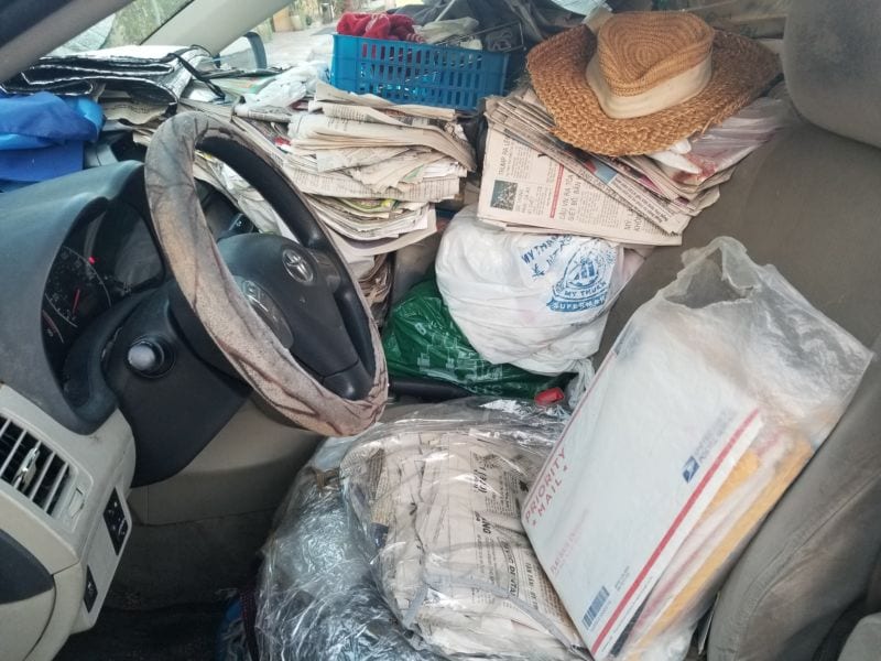 Chiếc xe trở thành “mái nhà” thu nhỏ cho những người không nhà như chị Ngọc, chất đầy những thứ mà người ta sợ vứt bỏ rồi có lúc không tìm thấy, từ chăn mền, quần áo, thùng cạc tông, báo chí, túi ni lông, cả những hộp nhựa to-go… Chỉ còn một chỗ cho chị ngồi, dù dưới ghế cũng là một xấp báo.