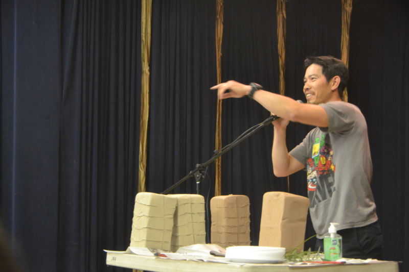 Ngoài thầy Duy ra, còn có đội ngũ giáo viên dạy vẽ của Saigon Art Academy đứng bên cạnh, hướng dẫn các em nặn đất sét. Thầy dặn dò rất kỹ từ cách đập mỏng miếng đất sét ra, đến miếng đất sét không ăn được nên các em nhỏ phải cẩn thận, rồi thầy còn dặn vì bàn chật nên các em phải biết tôn trọng bạn đứng cạnh mình, đừng chen lấn.