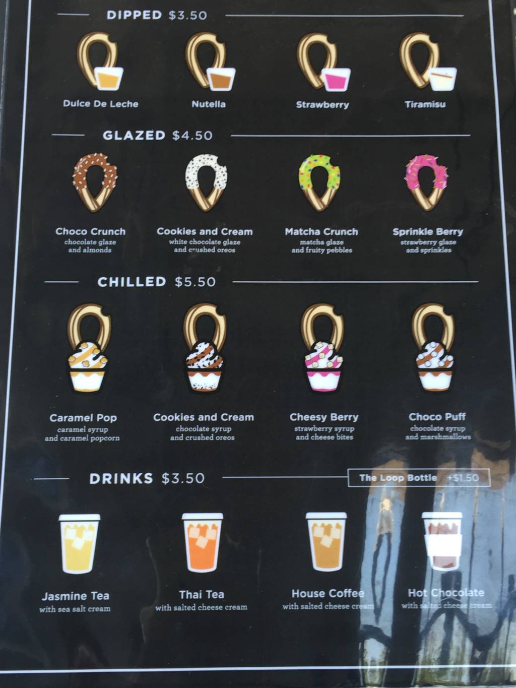 Thực đơn của The Loop cho phép khách hàng tự chọn churros theo sở thích của mình. (Hình: D.A/ Người Việt)