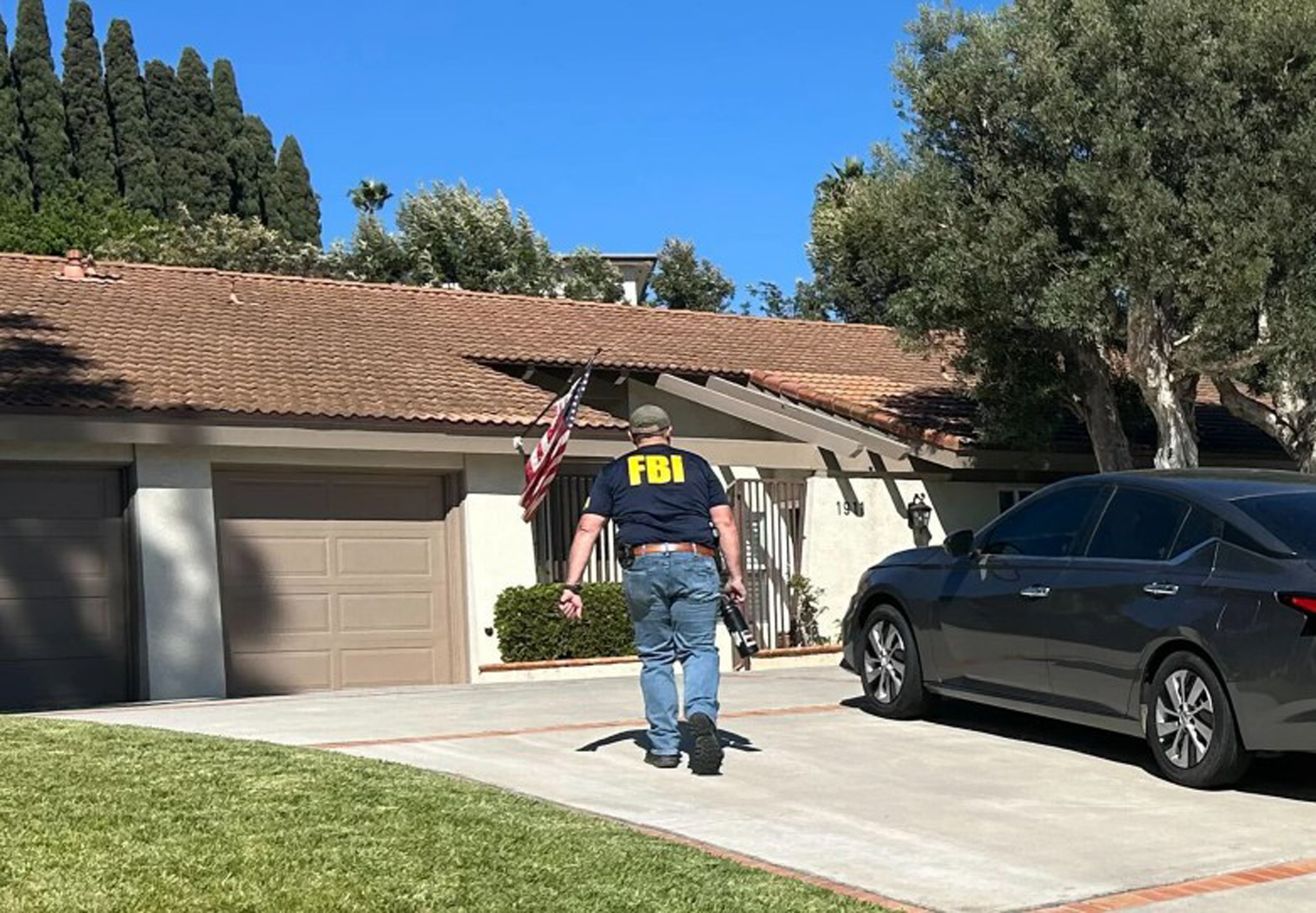 Nhân viên FBI khám nhà ông Andrew Đỗ ở North Tustin hôm 22 Tháng Tám. (Hình: Adolfo Guzman-Lopez/LAist)