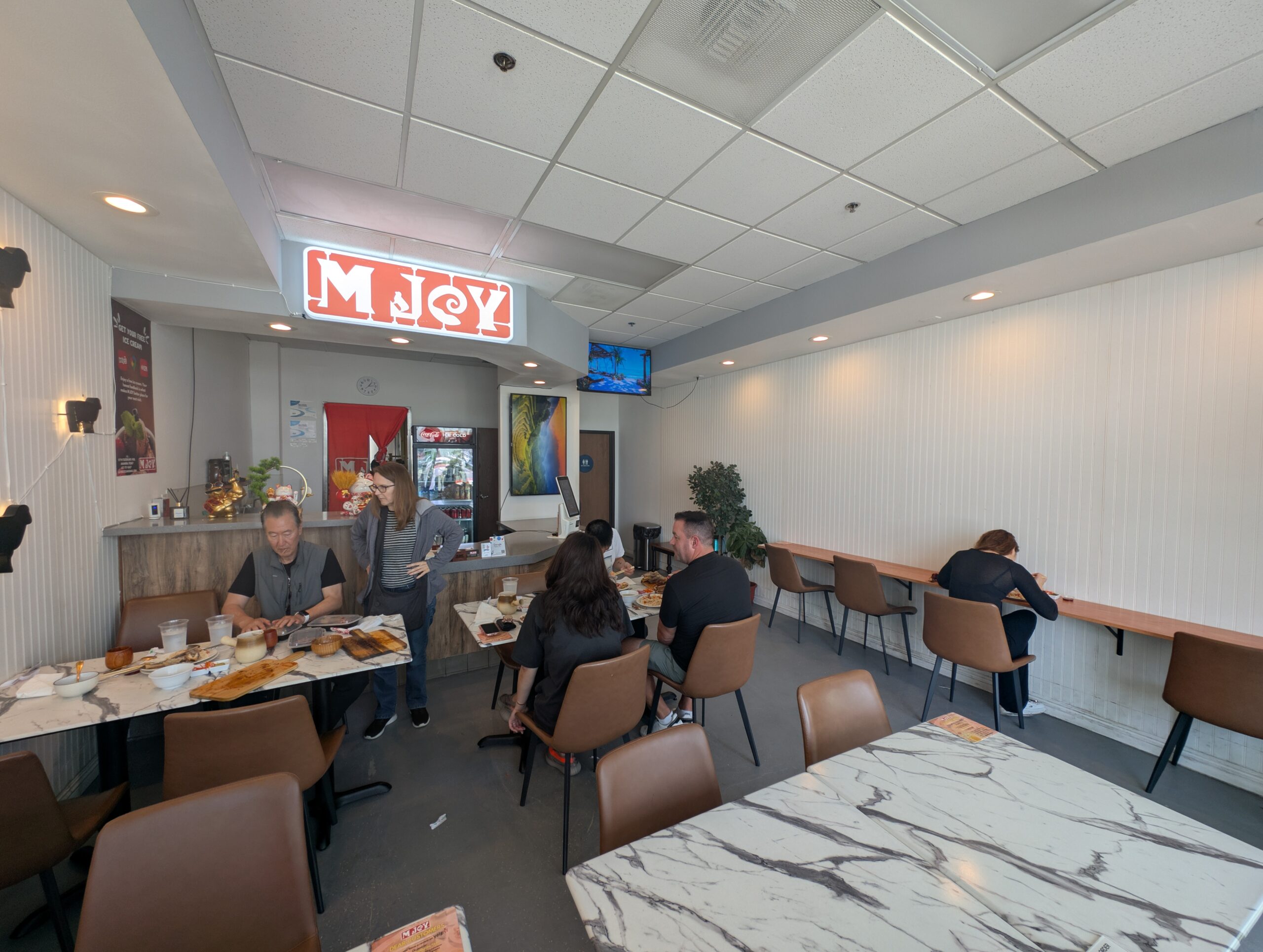 M Joy khai trương đến nay được một năm, nhưng không có quá nhiều người biết đến tiệm ăn này. Thực đơn của họ chỉ có thịt trừu và sử dụng loại thịt trừu cao cấp của New Zealand. Trang web của M Joy cho biết họ là một thương hiệu xuất xứ từ thành phố Hàng Châu, được thực khách ở quê nhà đánh giá rất cao và bây giờ mang những món thịt trừu hấp dẫn đến với thực khách Mỹ.