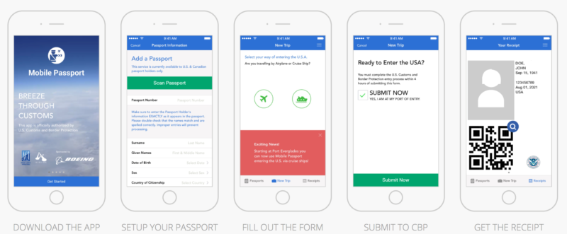 Đây là ứng dụng điện thoại miễn phí có tên là Mobile Passport Control (MPC) do Hội Đồng Sân Bay Quốc Tế-Bắc Mỹ (ACI-NA) làm việc với Cơ Quan Quan Thuế và Biên Phòng Hoa Kỳ (CBP) để thiết kế.