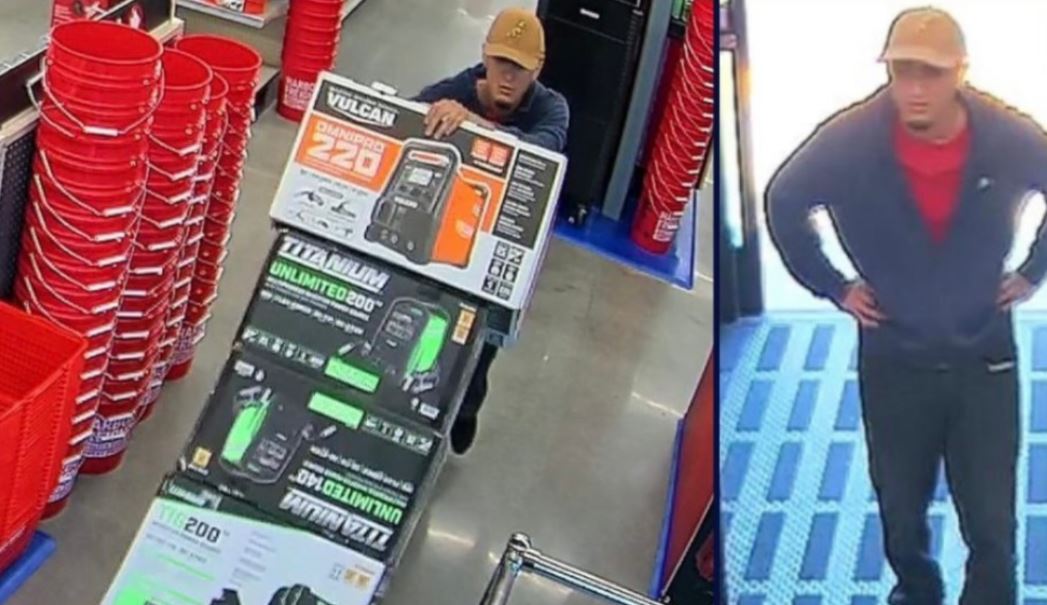 Nghi can chất bốn thùng máy hàn lên xe đẩy rồi đẩy ra khỏi cửa hàng mà không trả tiền, IPD cho hay.