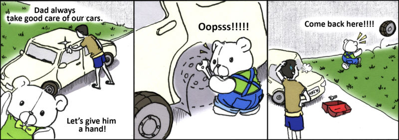 1- Ba em ăn sáng và lái xe cùng lúc.