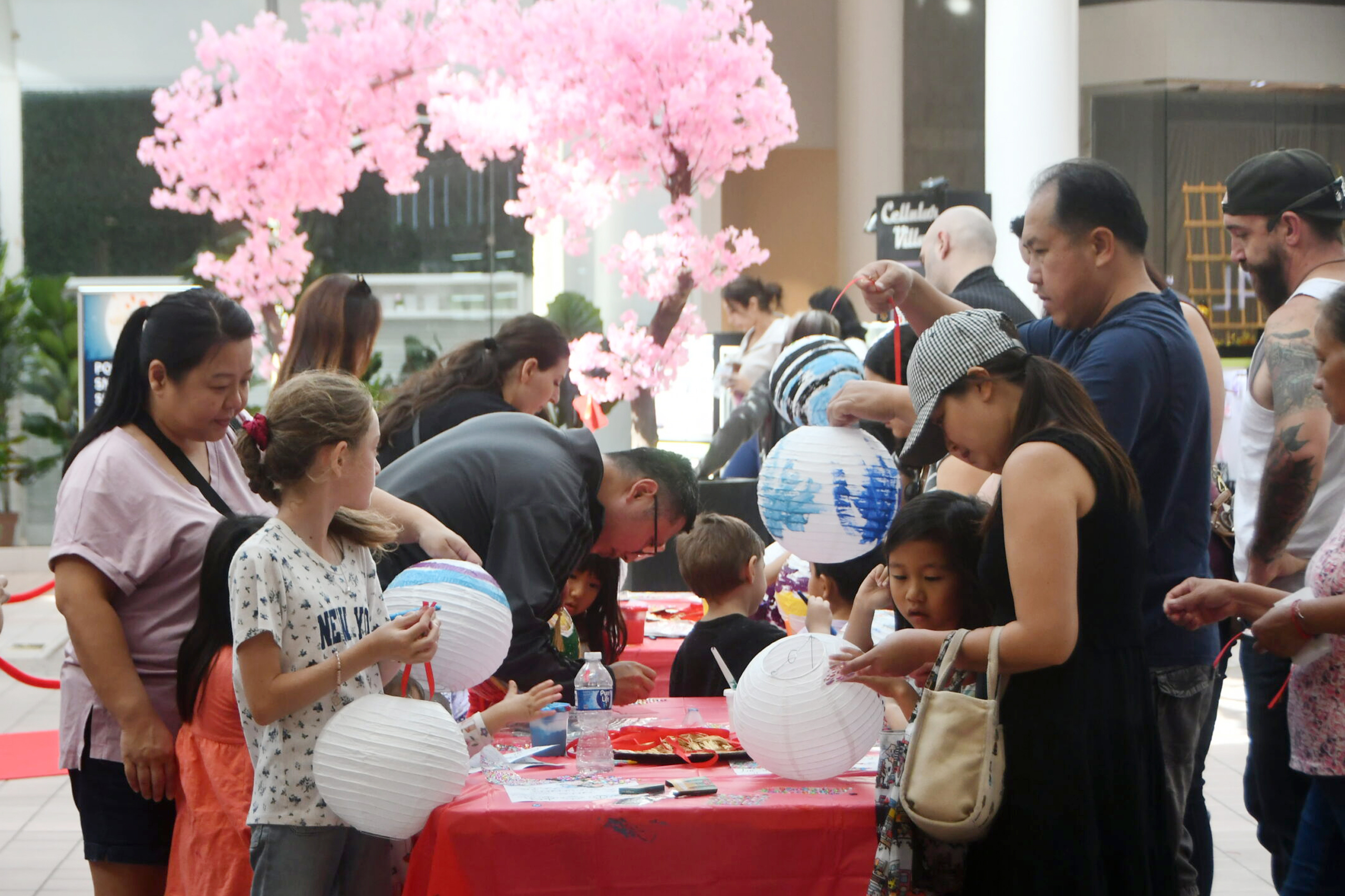 Ông Hòa Lê, cư dân Santa Ana, cho biết: “Thỉnh thoảng cuối tuần tôi ra đây mua đồ với vợ con, thế là tự nhiên hôm nay thấy khu mua sắm này tổ chức sinh hoạt Trung Thu ngay giữa sảnh như vậy. Tôi thấy có nhiều trò chơi vui nên quyết định đưa con gái vào tham gia. Nãy giờ cháu mới tô màu mấy trang sách xong, giờ tôi nghĩ chắc hai cha con phải qua trang trí lồng đèn rồi cho cháu treo lên cây đào.”