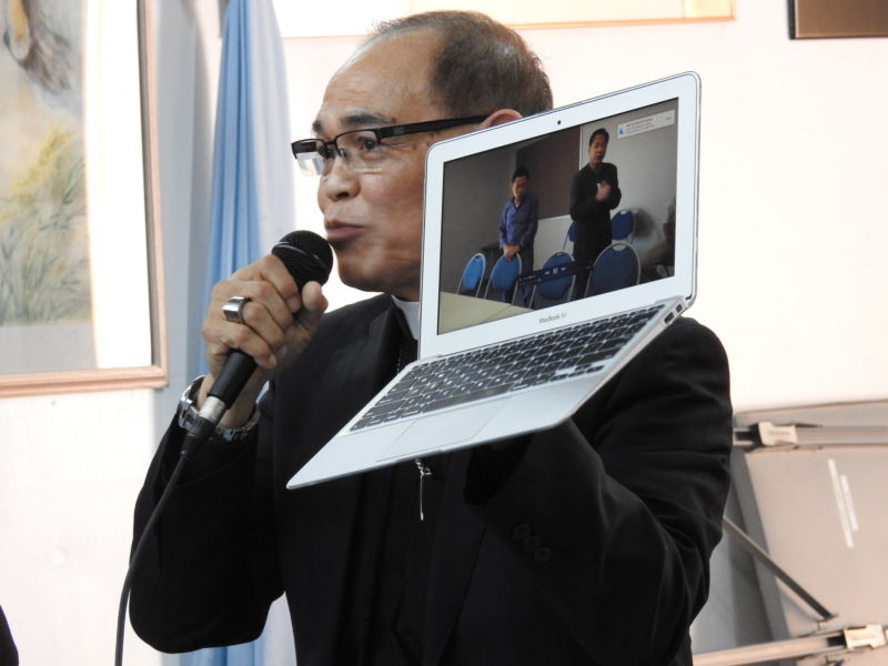 “Trước khi đếm phiếu, anh Nguyễn Mạnh Chí và anh Ngô Thiện Đức tuyên bố không đồng ý nếu ban tổ chức không loại bỏ những lá phiếu chỉ có tên và địa chỉ. Bằng không, họ sẽ rút lui và sẽ họp báo tức thì. Chúng tôi nói chúng ta đã có luật bầu cử, đây là thời điểm để thi hành, không sửa đổi được!” vị giám mục nói thêm và cho mọi người nghe lại lời tuyên bố của hai liên danh nêu trên từ máy laptop.