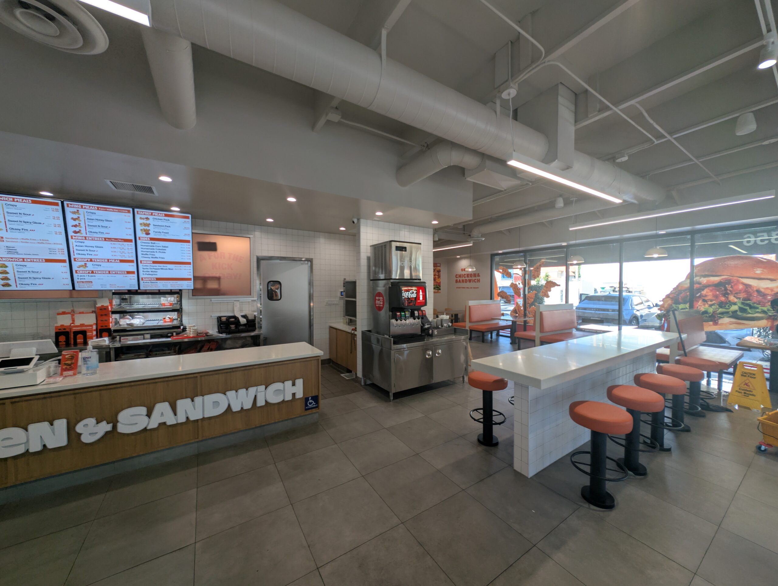 Okaay! Chicken and Sandwich còn có một điểm khác với nhiều tiệm gà chiên khác là cách làm việc vì bán theo kiểu thức ăn nhanh. Thực khách có thể gọi món ăn tại quầy với nhân viên hoặc có thể từ từ sử dụng máy tự phục vụ để chọn các món ăn.