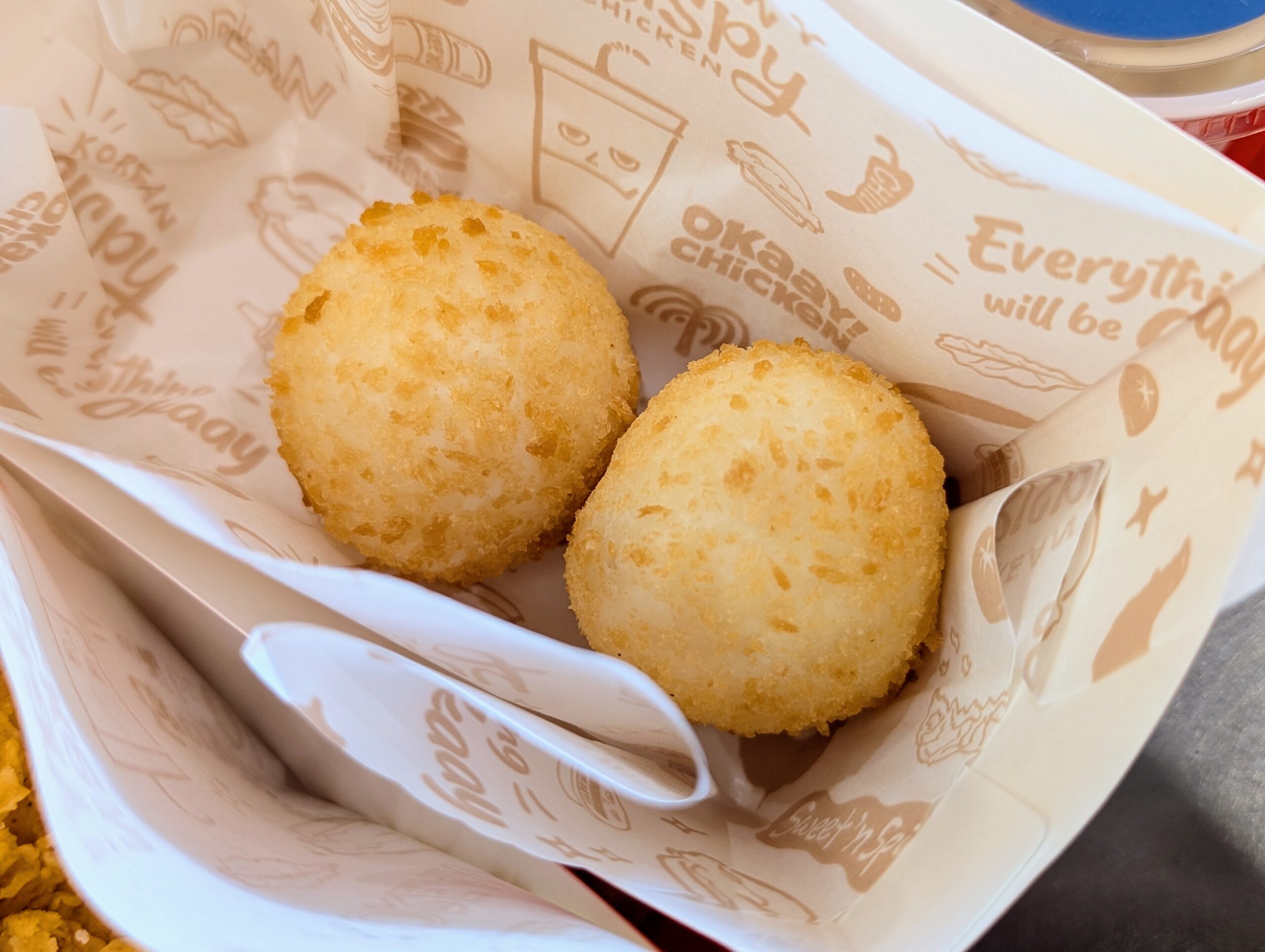 Một món khai vị mà tôi thấy ai đến Okaay! Chicken and Sandwich cũng gọi là bánh phô mai chiên, còn được gọi là viên phô mai chiên giòn, có một lớp bánh dẻo nhân phô mai mozarella ở giữa rồi nhúng bột chiên giòn.