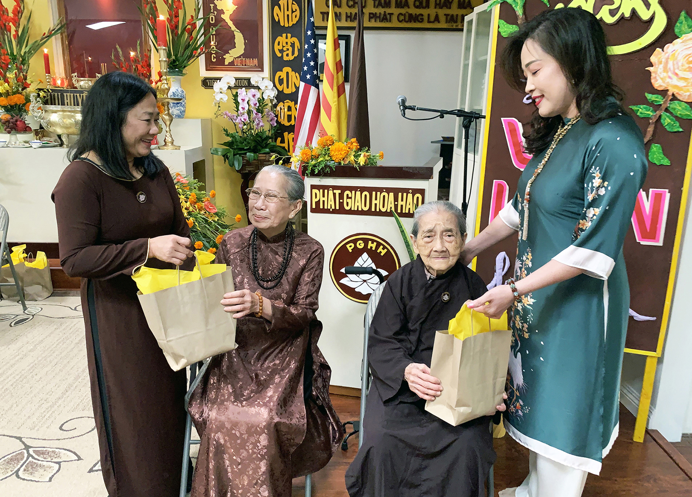 Sau cùng là nghi thức Bông Hồng Cài Áo và tặng quà cho các đồng đạo cao niên.