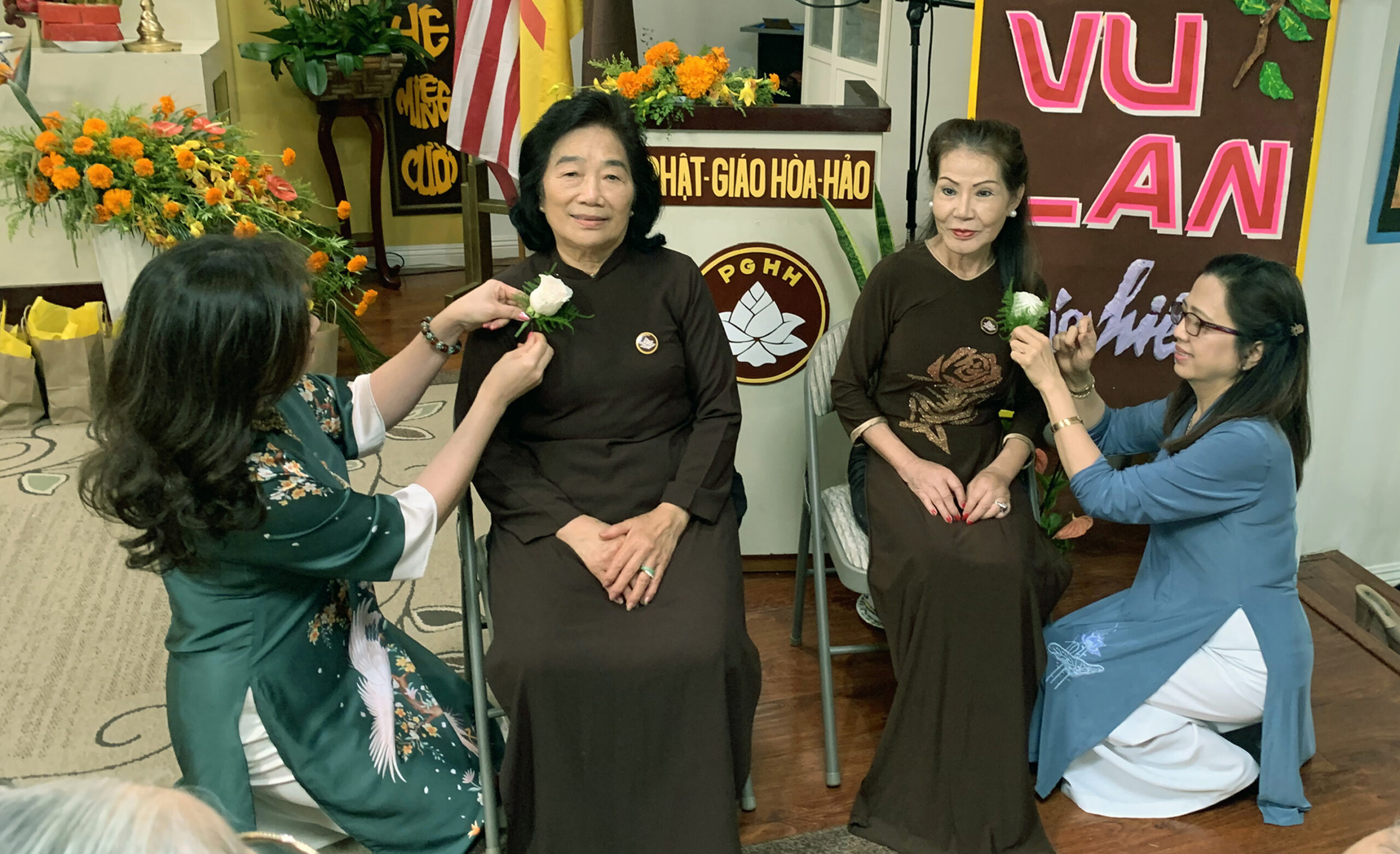 Lễ Cài Hoa Hồng cho các bà mẹ cao niên. (Hình: Lâm Hoài Thạch/Người Việt)